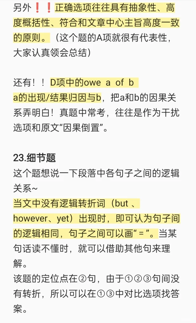 另外❗❗正确选项往往具有抽象性、高度概括性、符合和文章中心主旨高度一致的原则。(这个题的A项就很有代表性,大家认真领会总结)