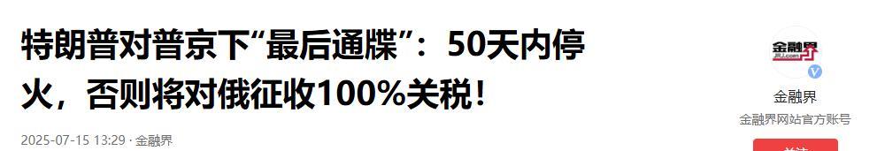 50天停火!特朗普下通牒 当地时间14日,美国与北约突然达成共识,高调宣布将全力援助乌克兰,其中美国将提供数十亿美元装备,仅"爱国者"导弹就多达17套,英国、丹麦、加拿大等国也迅速跟进。 特朗普显然没耐心再看冲突持续下去,他直接要求俄乌双方在50天内达成协议,否则就对俄罗斯征收100%关税,甚至要对其他从俄购买石油的国家实施次级制裁。这招可谓狠辣,既拿俄罗斯的经济命脉开刀,又想切断其能源贸易的国际通道,逼普京在谈判桌上让步。 但这种极限施压的方式,能不能奏效还得打个问号。俄罗斯向来吃软不吃硬,尤其在领土问题上态度强硬,更何况近期仍在向乌克兰发射导弹,显然没打算轻易妥协。 而美国这波操作的目的,远不止表面那么简单。一方面,通过主导停火谈判,美国能进一步巩固在北约中的话语权,让欧洲盟友更依赖自己;另一方面,军援本身就是笔划算的买卖,数十亿美元的装备订单,能让美国军工复合体赚得盆满钵满。 更关键的是,特朗普需要尽快兑现"解决俄乌冲突"的承诺,为自己的政治筹码加分。而推动乌克兰执行矿产计划,更是把算盘打到了战后利益分配上,一旦停火,美国就能名正言顺地介入乌克兰的资源开发,攫取长期利润。 接下来的第3轮俄乌谈判,注定不会轻松。核心矛盾还是领土问题,乌克兰是否坚持收回所有领土,将直接决定谈判走向。美国的协调作用虽然关键,但乌克兰国内的民意和军方态度也不容忽视。如果乌克兰在领土诉求上寸步不让,谈判很可能陷入僵局,特朗普的50天期限也就成了空谈。 其实,特朗普的停火通牒,更像是给俄乌双方画了个饼。对乌克兰来说,有了美国的军援和承诺,谈判底气确实会增强,但过度依赖外部力量,终究不是长久之计;对俄罗斯而言,制裁威胁虽大,但国家安全和战略利益面前,恐怕不会轻易低头。 而美国看似占据主导地位,实则也面临风险——一旦制裁引发全球能源市场动荡,欧洲盟友首当其冲,很可能反过来对美国产生不满,毕竟谁也不想为美国的政治野心买单。 这场50天的博弈,最终走向如何,还要看各方的妥协程度。但可以肯定的是,美国的算盘打得再精,也未必能完全掌控局势。