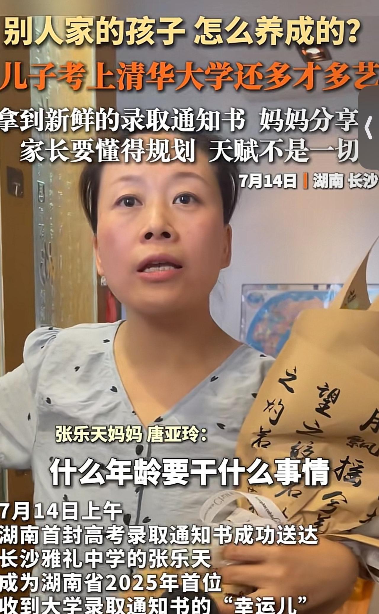 怪不得人家的孩子能考上清华,原来在他们人家手机电视电脑就是个摆设,孩子至今还用老人机。我后悔了,要是当初我不给儿子买智能手机,是不是他也能考上清华啊。原来人家不仅有个优秀的孩子,更有个优秀的妈妈。 这是湖南首个收到清华大学录取通知书的学生妈妈在分享她儿子考上清华的经验。她说她儿子一直在用老年机,因为现在网络的诱惑太大了。不仅是手机,就是他们家的电视电脑也只是摆设。 所有,那些说让孩子用手机电脑学习的家长都是在自欺欺人,可是又有几个家长能做到现在还让孩子用老人机啊。 孩子妈妈还说了,天赋只占40%,更多的是考努力,没见哪个孩子在那坐着不学习就能考上清华的。 而且妈妈还能提前给孩子进行合理的规划,人家孩子现在古筝十级,围棋三级,还打的一手好乒乓球。 所以天上不会掉馅饼,有优秀的孩子,更有优秀的妈妈,太多的优秀和努力才有了今天的清华大学的录取通知书。 一看这位家长就不是一般人物,估计在单位也是个厉害的领导。跟这样的家长相比,我简直一无是处,怪不的我儿子考不上清华呢。
