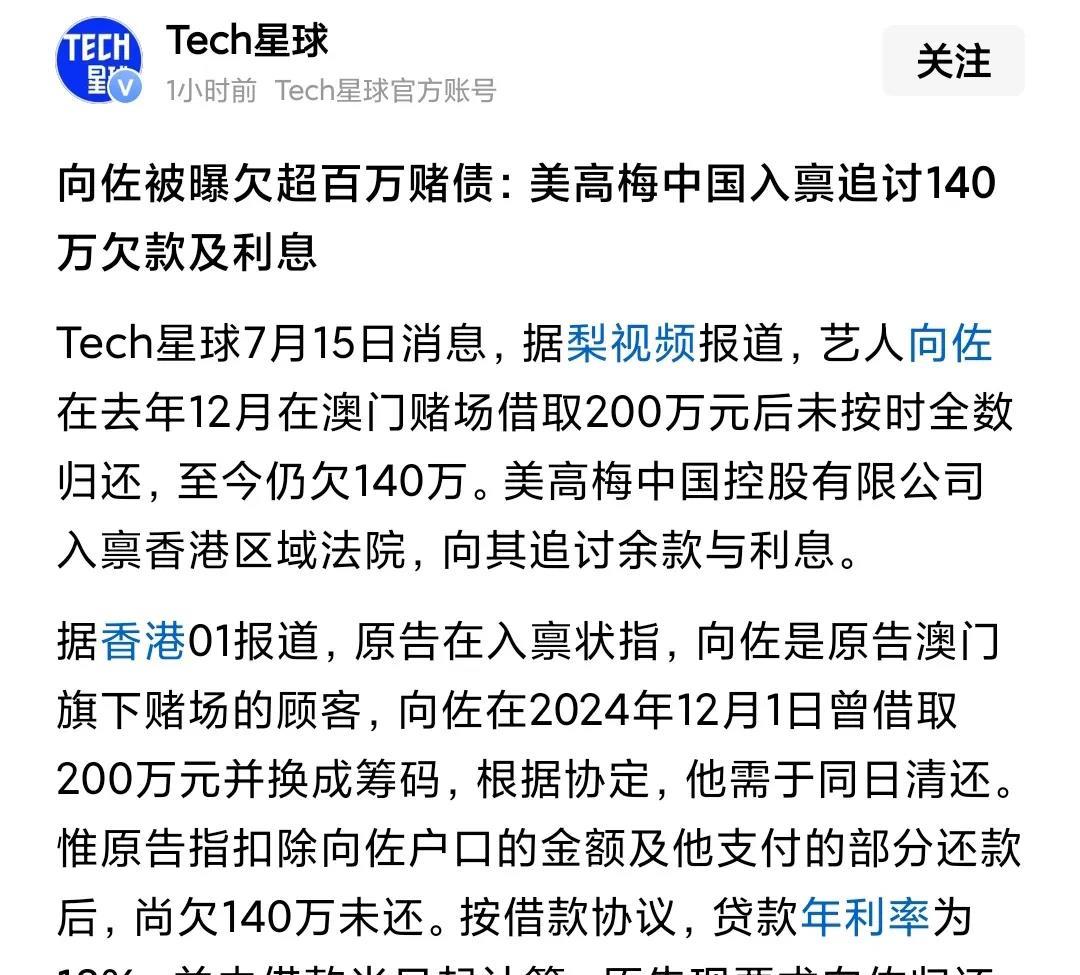 郭碧婷豪门媳妇的好日子原来早就过到头,离出来挣钱不远,就看能撑到什么时候。 当一个大家认知上的富豪突然被爆出来欠款,还是欠大人物一点点小钱还不起,那就远不止爆出来的问题。 向佐去年12月在澳门美高梅赌场借了200万,半年就还60万,还不是美金,而是港币。 美高梅的老板是何超琼,欠美高梅200万,等于欠何超琼200万。半年才还60万,向家要是有钱早就还了,都丢不起这个人。 向家都没钱,她这个豪门媳妇的好日子也要到头,弄不好还要出来替夫还债。