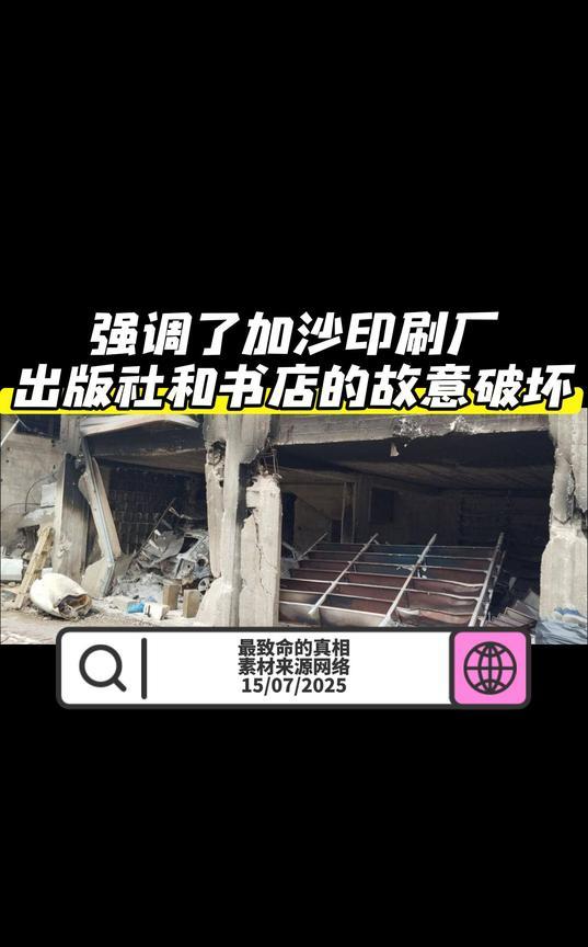 巴勒斯坦研究所发布了一份报告,强调了加沙印刷厂、出版社和书店的故意破坏,这些都是
