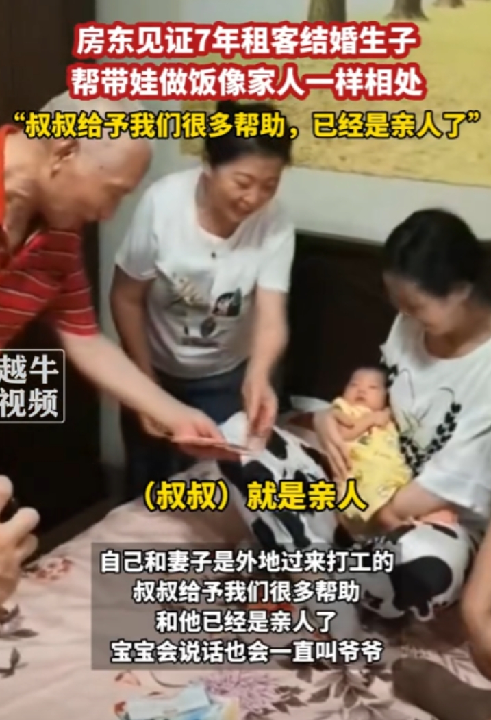 “这个房东大爷火了!”2024年一女子来上海打拼,租下房东大爷一个次卧,而房东大爷见证了她结婚生子,还帮忙带娃做饭,比亲生父亲还要亲!网友:这个房东是真的好,因为很多房东都不允许租客在自己房子里生孩子! 据越牛新闻2024年1月21日报道,房东见证7年租客结婚生子,帮忙带娃做饭像家人一样相处。 2017年,刚大学毕业的张女士一个人背起行囊,带着满腔热情来到了上海追梦。 大城市的繁华让她眼前一亮,但高昂的房租也把她打回了现实。 为了节省开销,她在网上找到了一个合租房,租的是大爷家的次卧,从此开始了与大爷同住的日子。 那会张女士工作特别忙,天天早出晚归,连好好吃顿饭的时间都没有。 每次她加班回来,房东大爷都会在厨房里热好饭菜,她一进门,饭菜的香气扑鼻而来,那种感觉,就像在异乡突然闻到了家里的味道,让她特别感动。 后来她谈起了恋爱,男朋友康先生第一次来她住的地方,大爷特别热情,不但亲自下厨,还做了一桌拿手菜。 康先生还以为这是她的爸爸,得知只是房东时惊讶得不行,连连感叹这房东也太亲切了吧。 从那以后,康先生就经常过来,两人常常一边吃饭一边和李大爷聊天,仿佛真的成了一家人。 到了2020年,两人准备结婚了。 康先生原本提议搬出去住,有个属于自己的小家也更方便。 可张女士却犹豫了,她说:“李大爷已经71岁了,一个人住太冷清了,我们要是搬走,他会不会觉得孤单?” 康先生一听,也点头同意了,觉得离开确实有点不舍。 于是他也搬进来,三个人继续一起生活,像家人一样过日子。 后来张女士怀孕了,虽然高兴,但也有点担心。 她怕在别人家生孩子不合适,大爷却笑呵呵地说:“你们就安心住着,孩子出生了我还能帮你们带带呢!”一句话让张女士彻底安心了下来。 孩子出生后,大爷更是忙上忙下。 他亲自去医院把孩子接回家,满月那天还特意包了一个大红包。 平时小两口要上班,李大爷就主动在家帮忙照顾孩子,喂奶、哄睡、换尿布样样都干。 他把这孩子当成了自家孙子一样疼爱。等宝宝学会说话了,一看到大爷就喊“爷爷、爷爷”,每次喊得李大爷眉开眼笑,满脸慈爱。 一晃七年过去了,如今他们早就不只是房东和租客的关系了,早就成了一个真正的“家”。 张女士常跟朋友说:“房东大爷对我们,比亲人还亲。” 这段经历被网友们看到后,评论区都炸了。 有的说:“遇到这样的房东真是天大的幸运,现在有些房东连怀孕都不让住。” 也有人羡慕地说:“这才是最好的关系,不是亲人,却胜似亲人。” 信源:越牛新闻