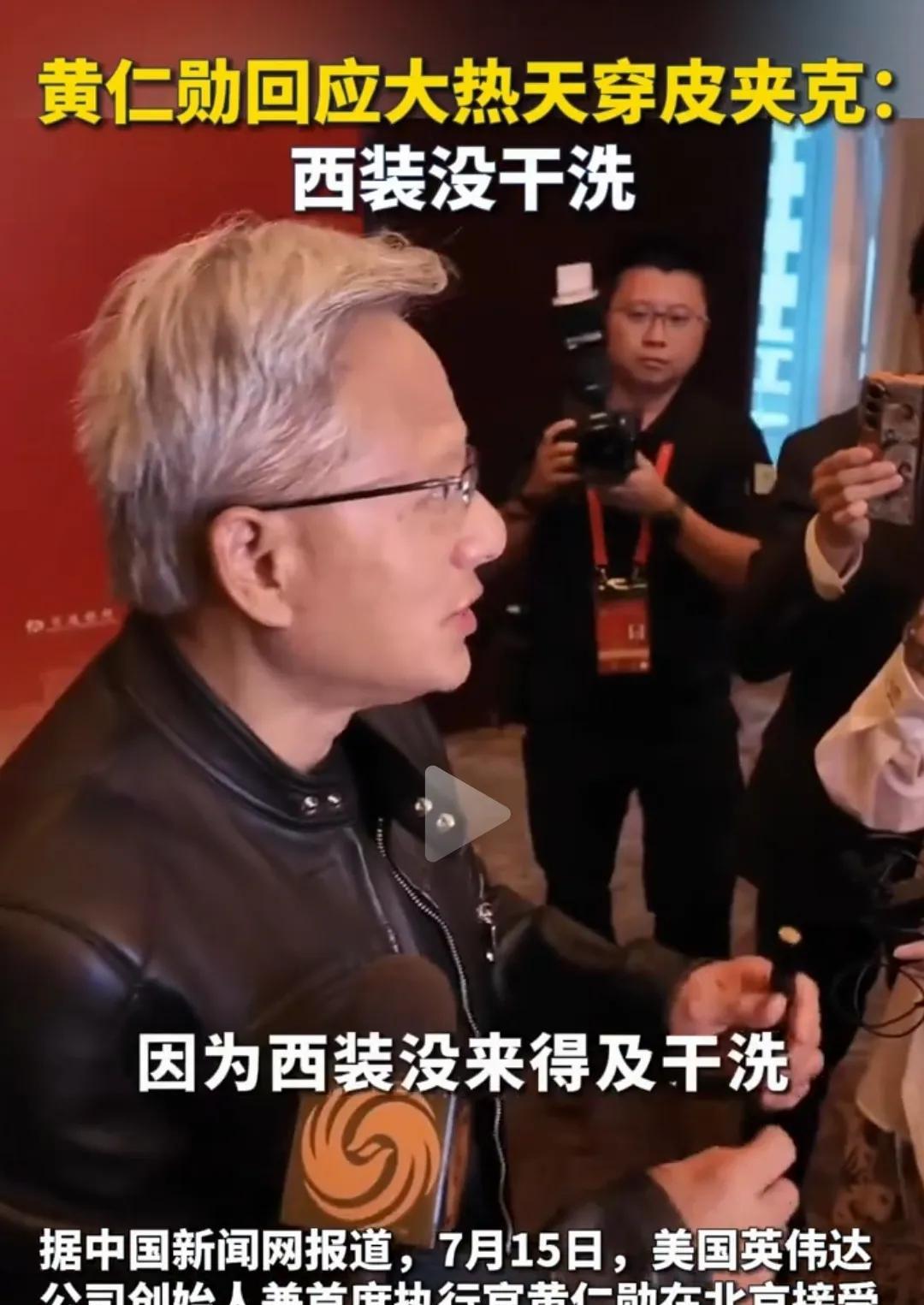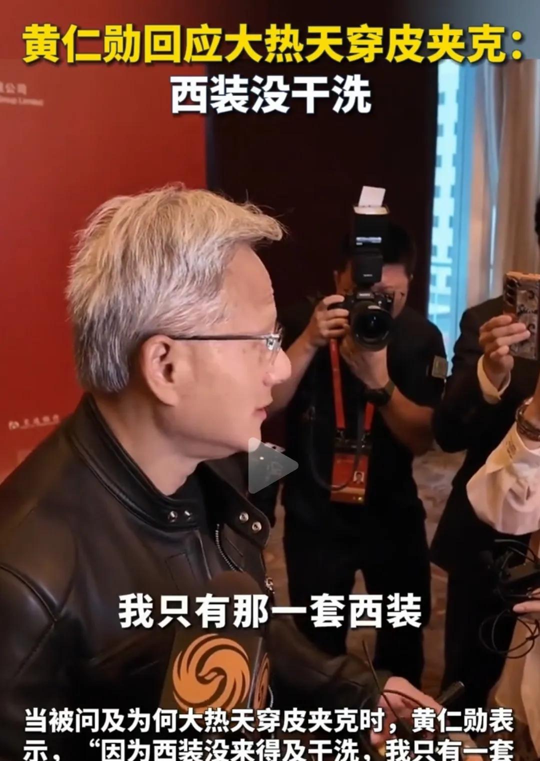 哈哈,黄仁勋变装秀,快得有点让人猝不及防。才说因为西装没有干洗。所以40度高温也