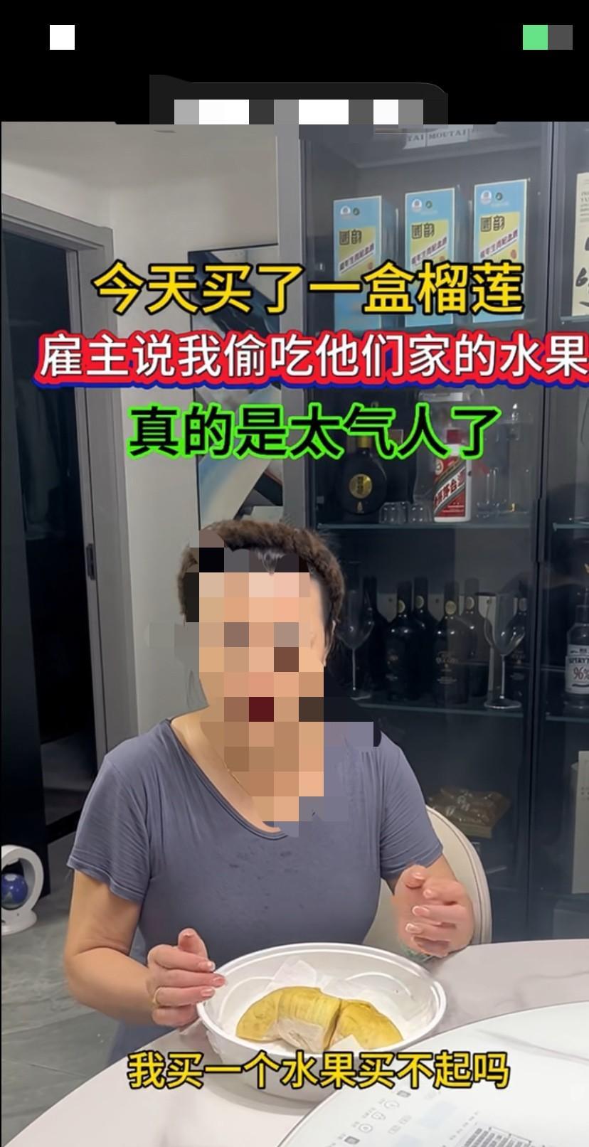 宝妈问:“阿姨,你怎么吃我们家水果啊?” “宝妈你看清楚,这是我自己买的呦,你们的在冰箱,我没吃你们的呦!你们每次吃的时候我都看着,我今天我自己买了一个”。 “你买得起吗?榴莲这么贵!” “我的工资那么高,我买一个水果我买不起吗?” “那你别吃完了,给宝宝留一点” #家政# #阿姨#