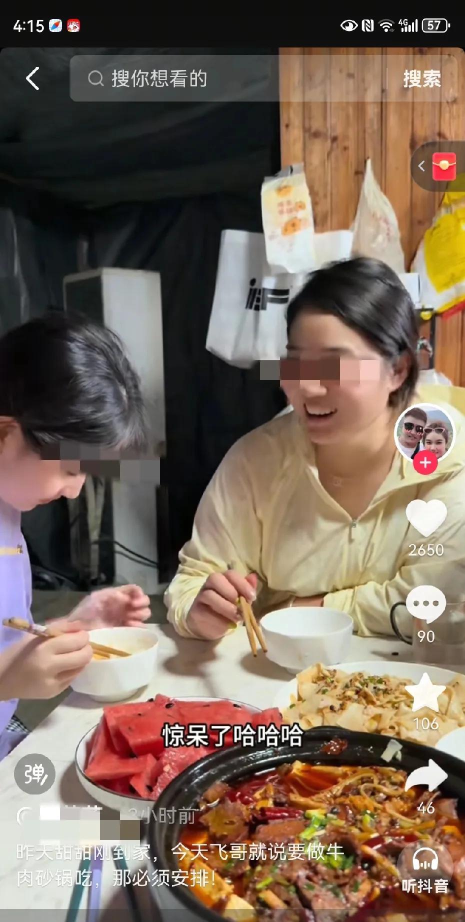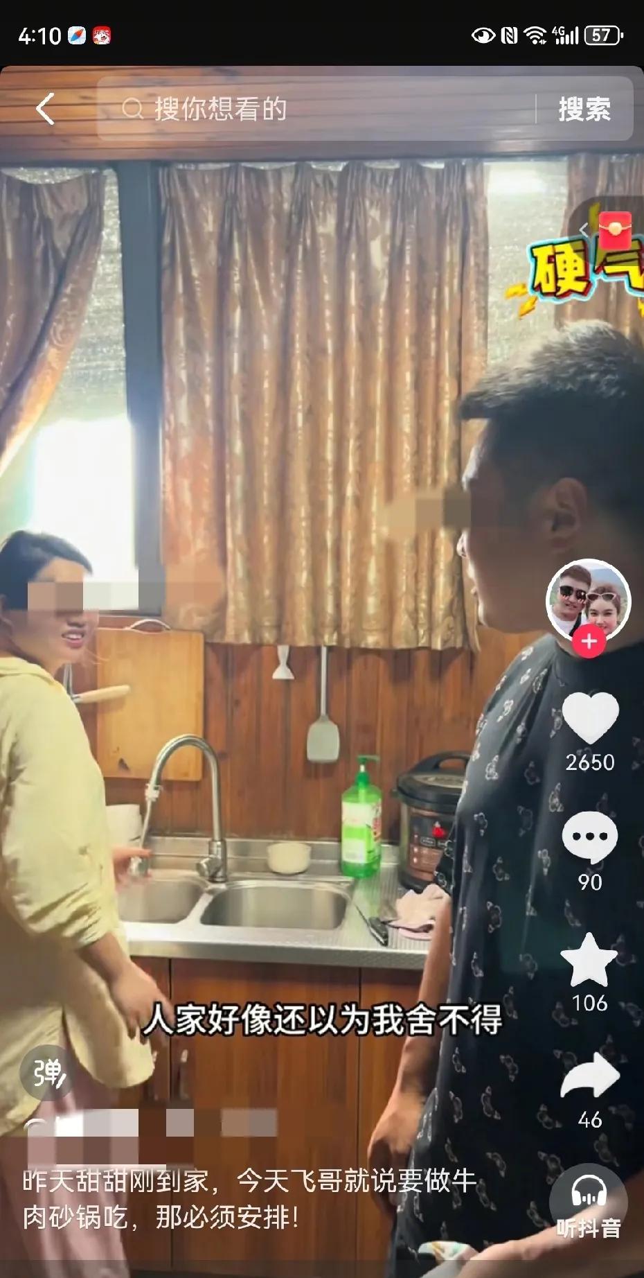 菲菲女儿来了,飞哥安排大餐。 甜甜到妈妈家去了,大气的飞哥买了一堆菜回去,让菲菲