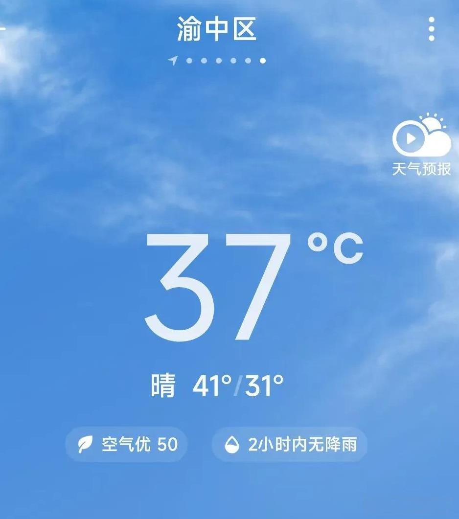 刚才走了一圈,办公室的年轻人都在网上点餐,都不愿意出门,跟老天爷正面打交道。我感觉是不是太阳裂了个缝,今天厦门最高34度,老家38度,重庆市区竟然高达41度,41度,41度!