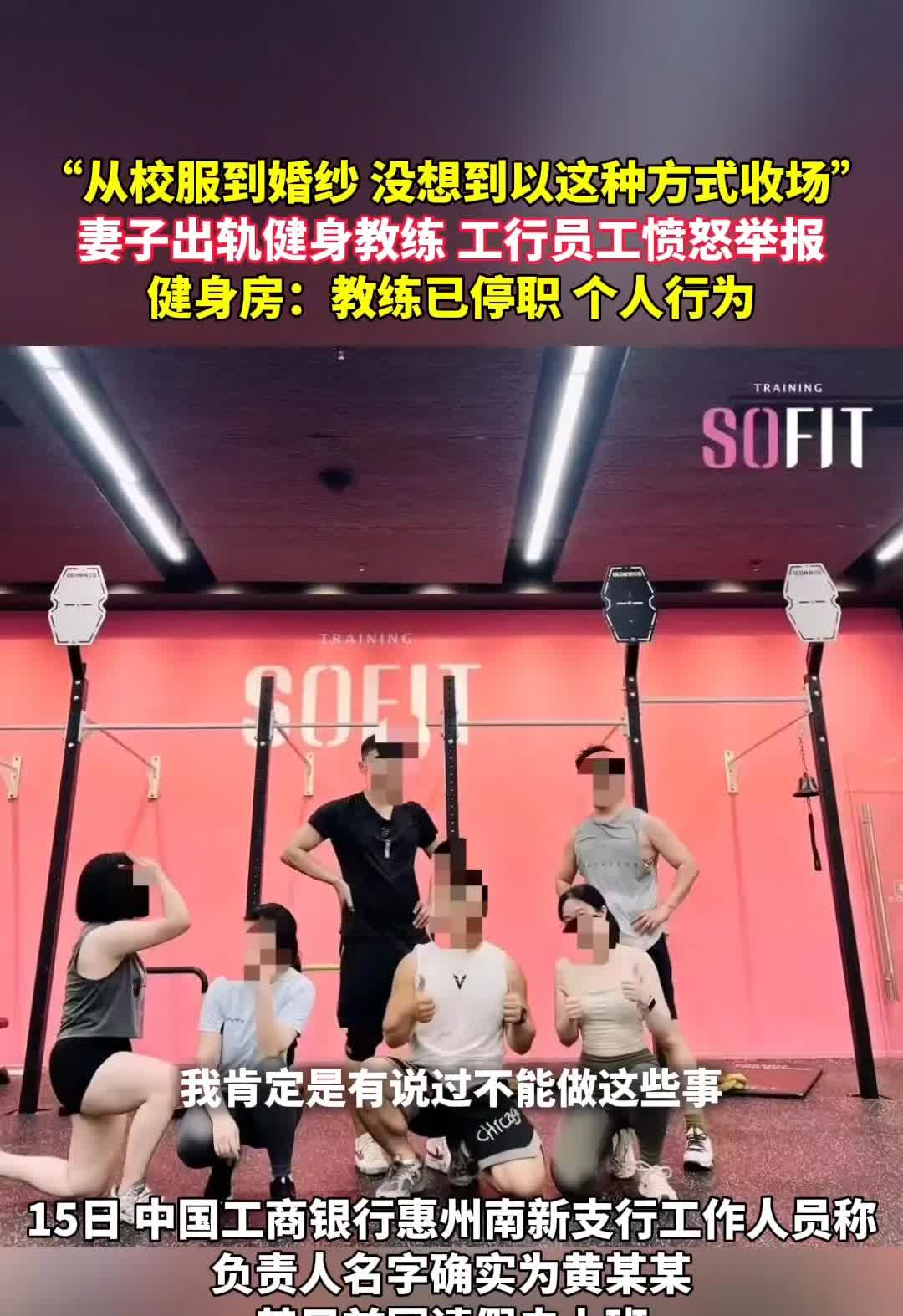 这是真的心碎了!男子实名举报自己在工行上班的老婆,婚内出轨健身教练,恳请工行开除老婆的职务以及党籍。 近日,广东惠州工行一支行负责人在网上实名举报,称自己和老婆经历的10年的感情,从大学里开始谈恋爱一直走到现在,可是却发现老婆竟然出轨健身教练。 男子称自己实在不能忍受妻子的出轨行为,尽管自己的爸妈恳求自己不要将此事公开,但是自己只能不孝了,就算被别人说闲话,也要将此事公开,要让老婆为自己的行为付出代价。 目前,健身房工作人员称,涉事的健身教练已经被停职。 从男子的行为可以看出,男子是有多爱老婆,才会这样,真相爱过的人都知道,男子这是伤到了骨子里去了。 真的不明白男子的老婆为何会选择出轨,从男子的描述来看,两人事业都不错,感情一直以来也比较稳定,这是很多人都羡慕不已的生活啊!