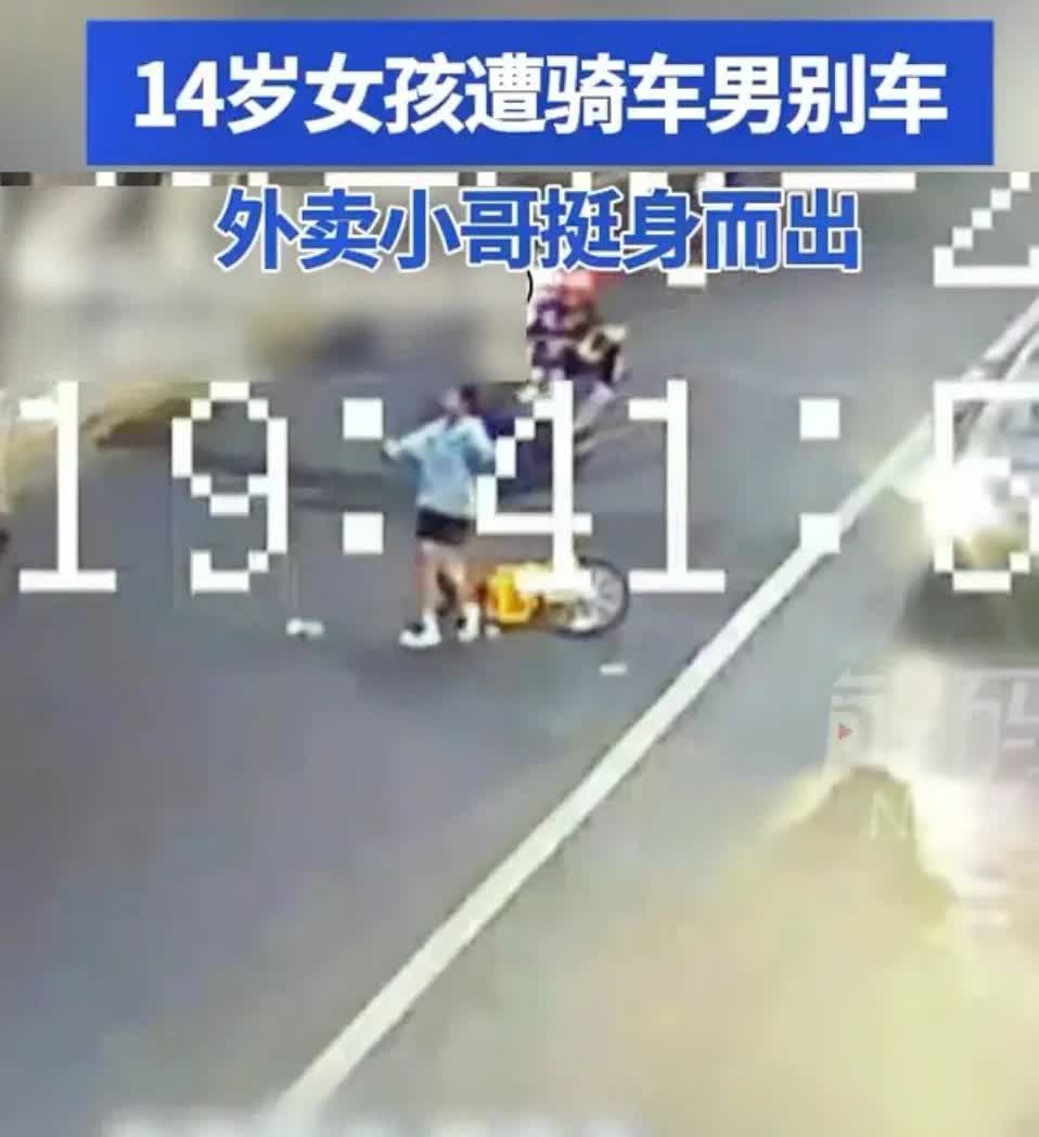 男子别车14岁少女,外卖小哥制止!15日傍晚,北京一14岁女孩骑车超车时按铃提醒