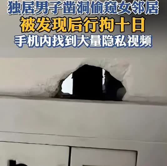 “色胆包天,炸裂”1月,内蒙古,一独居男子见女邻居长得漂亮,竟偷偷在墙上凿了个洞,夜深人静时偷窥女邻居,拍下大量私密照片,岂料,女邻居丈夫回家后,意外发现了小洞,羞愤交加之下当即报了警。 在呼和浩特市回民区的一个普通小区里,有个单身男士高某,因为色心大起,竟然在墙上挖了个洞偷看隔壁的女邻居黎女士,还拍了好多她的私密照片和视频。这事儿发生在1月份,黎女士的老公长期在外地工作,她一个人在家。黎女士长得漂亮,行为也端庄,结果被高某给盯上了。高某动起了歪脑筋,等到晚上大家都睡了,他就在两家共用的墙上偷偷挖了个小洞,正好对着黎女士家的客厅。从那以后,他就跟个偷窥狂一样,天天偷看她。 但他还不满足,又用手机拍了好多照片和视频,把黎女士的日常都记录下来了,这些照片和视频就成了他满足自己变态欲望的“宝贝”。直到有一天,黎女士的老公突然回家,在给手机充电的时候,无意间发现了墙上的小洞,凑近一看,竟然直接通到了隔壁高某家。他又惊又羞又气,立马就报了警。法律可不会放过这种侵犯别人隐私的行为。警察很快就到了。一开始,高某假装糊涂,不承认自己做的事。但警察在他的手机里找到了好多黎女士的私密照片、视频,还有录音,证据确凿,他这下没法再耍赖了。 结果,高某因为偷看人家隐私,被警察抓了,要关10天。事情弄清楚后,黎女士又惊又气,高某也因为他的下流行为得到了应有的惩罚。