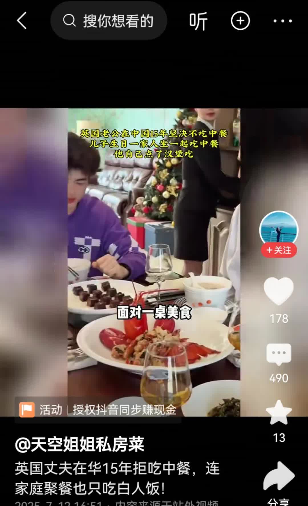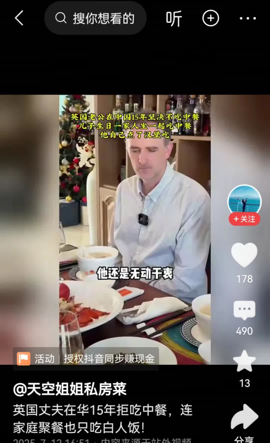 一位女子发视频说:她的英国老公在中国定居15年了,但是从来不吃中餐。儿子过生日那
