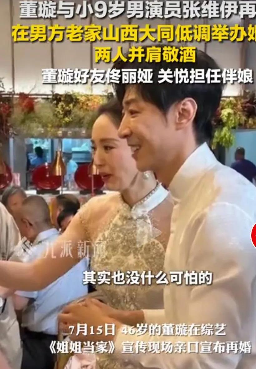 反转!想不到董璇和张维伊的婚姻现场曝光,本以为会迎来一片的祝福声,结果评论区的网友却是一片的唱衰。 有网友评论论道46岁了,快绝经了吧。 还有网友评论道伴娘不应该是未婚女性吗? 更有网友评论道最多两年,拭目以待。 看了网友的评论最终就是因为董璇和张唯伊差了9岁,再就是董璇还带了一个女儿。 可是从婚礼现场来看,董璇和张维伊的婚礼应该是在五星级酒店办的,而且娱乐圈儿来了很多好友,可见张维伊是接纳了董璇的女儿的也不介意年龄的。 再说了如果张维伊介意的话,以董璇的性格也根本不可能再婚的。 你对二婚如果是姐弟恋有什么看法呢?