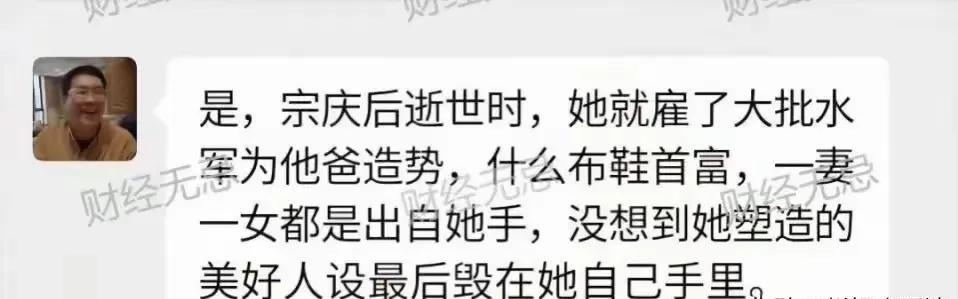 宗家的瓜越来越大了,这几天满屏都是关于他家的事情,真假难辨。 昨天看到说不是四个孩子,是六个孩子。到底是几个不知道。我们也就姑妄听之,看之。 宗馥莉的叔叔一天发五条微博,来澄清一些事情,说宗老的好人设是她一手造成的,这么做,就是为了不让那些人暴露在公众视野。 还说哇哈哈和他们没关系,是她的叔叔和杜建英一手打造出来的。 杜建英同学的史晓燕也出来了,说了一些话,说杜建英平时都很郁闷,从来没看见她高兴过。 听着看着越来越多的信息,真的是真假难辨,真相到底是什么,谁也不知道,都是在根据蛛丝马迹在胡乱猜疑。 忽然觉得,宗庆后这老头有些可怜了,没想到死后也不得安息,被推到舆论的风口浪尖了。 宗老一生心血,换取生前身后名,作为他的晚辈,不应该这么做啊。如今事情闹大了,怎么收场不知道呢!