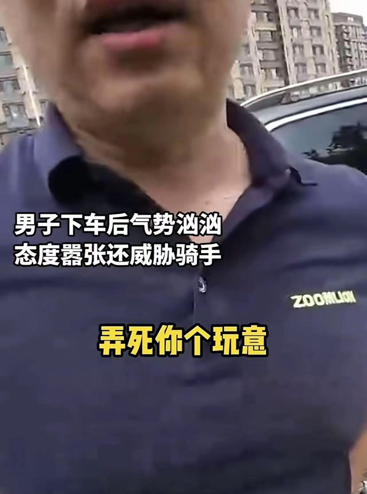 别停越野车辱骂骑手的嚣张男子已被警方拘留! 7月16日下午,小潘骑着摩托车正常行