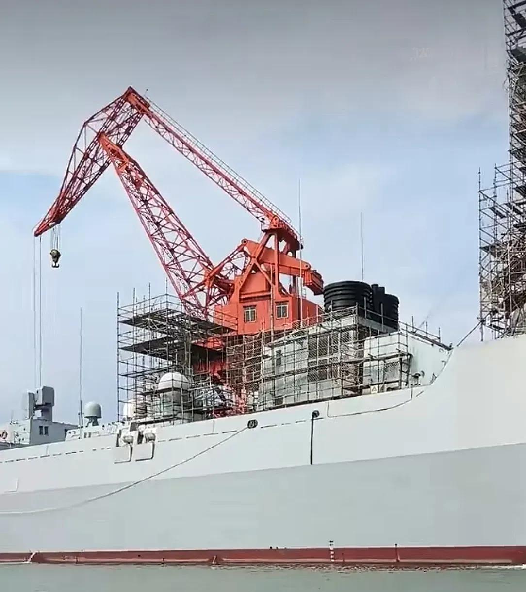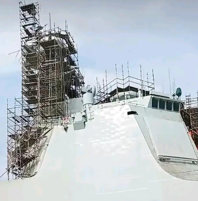 2015年12月13日,052D型驱逐舰的第三艘“合肥”舰入列服役,舷号174。入列不到10年,这艘052D型驱逐舰就开始了改装,舰桥上部、主桅顶部的国产“音乐台”雷达,364型机械扫描雷达,都搭上了脚手架,舰体舯部的“晾衣架”雷达部位,也被脚手架所覆盖。无疑,这次改装雷达电子设备的升级是重点。 国产“音乐台”雷达,有什么可以替代,暂时不好说。052D主桅顶部的64型机械扫描雷达,在最新批次052D型上,早已被368型有源相控阵雷达所取代了。舰体舯部的“晾衣架”雷达,肯定也会被“苍蝇拍”反隐身雷达替换。 所以说,雷达升级后的“合肥”舰,在对于末端掠海飞行目标的探测距离方面,368型有源相控阵雷达,是364型雷达反应时间的一倍。而“苍蝇拍”反隐身雷达,对于隐身目标的探测能力,也是要远强于原来的“晾衣架”。 这次“合肥”舰上覆盖的脚手架,真的有点儿比着052DM型来的意思,四面S波段大盾,两面X波段小盾,再加上专盯隐身目标的“苍蝇拍”雷达。“合肥”舰的改装升级,的确是恰逢其实。