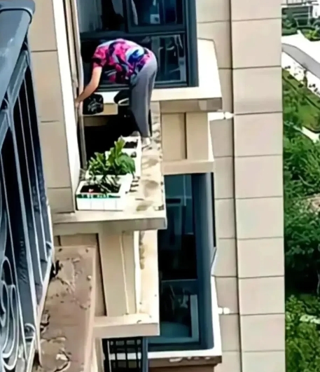 小区阳台种菜的一幕。 不得不说,这样真的很危险,不建议这样操作。[捂脸哭][捂