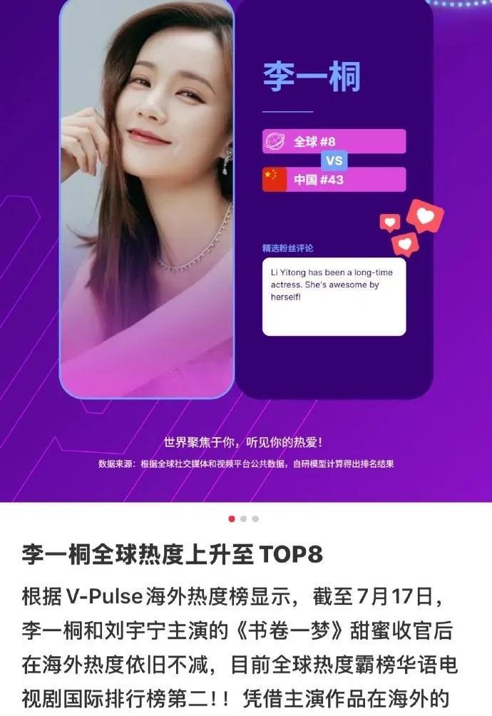 李一桐凭借古装剧《书卷一梦》在海外市场掀起追剧热潮,不仅剧集热度居高不下,其个人