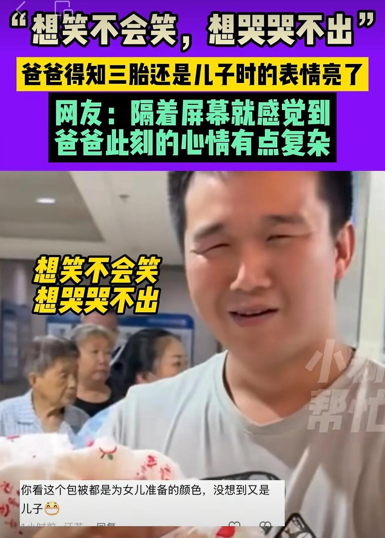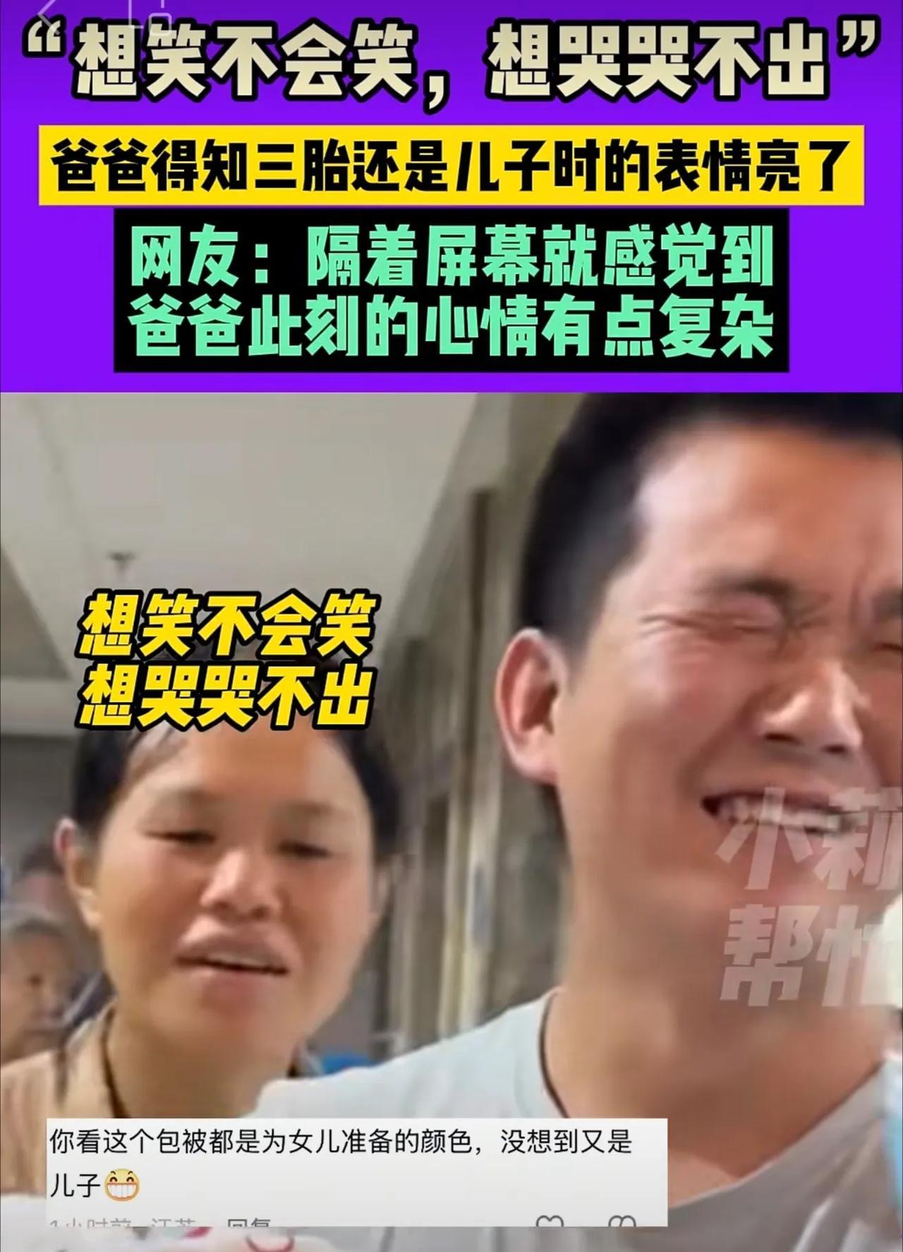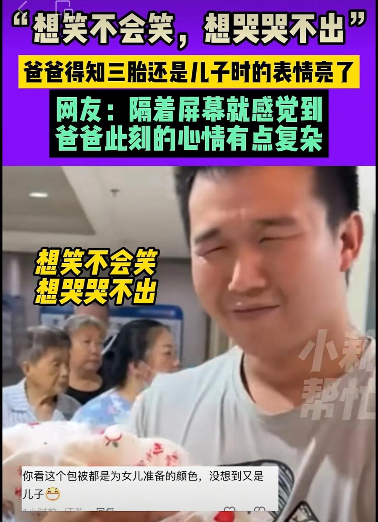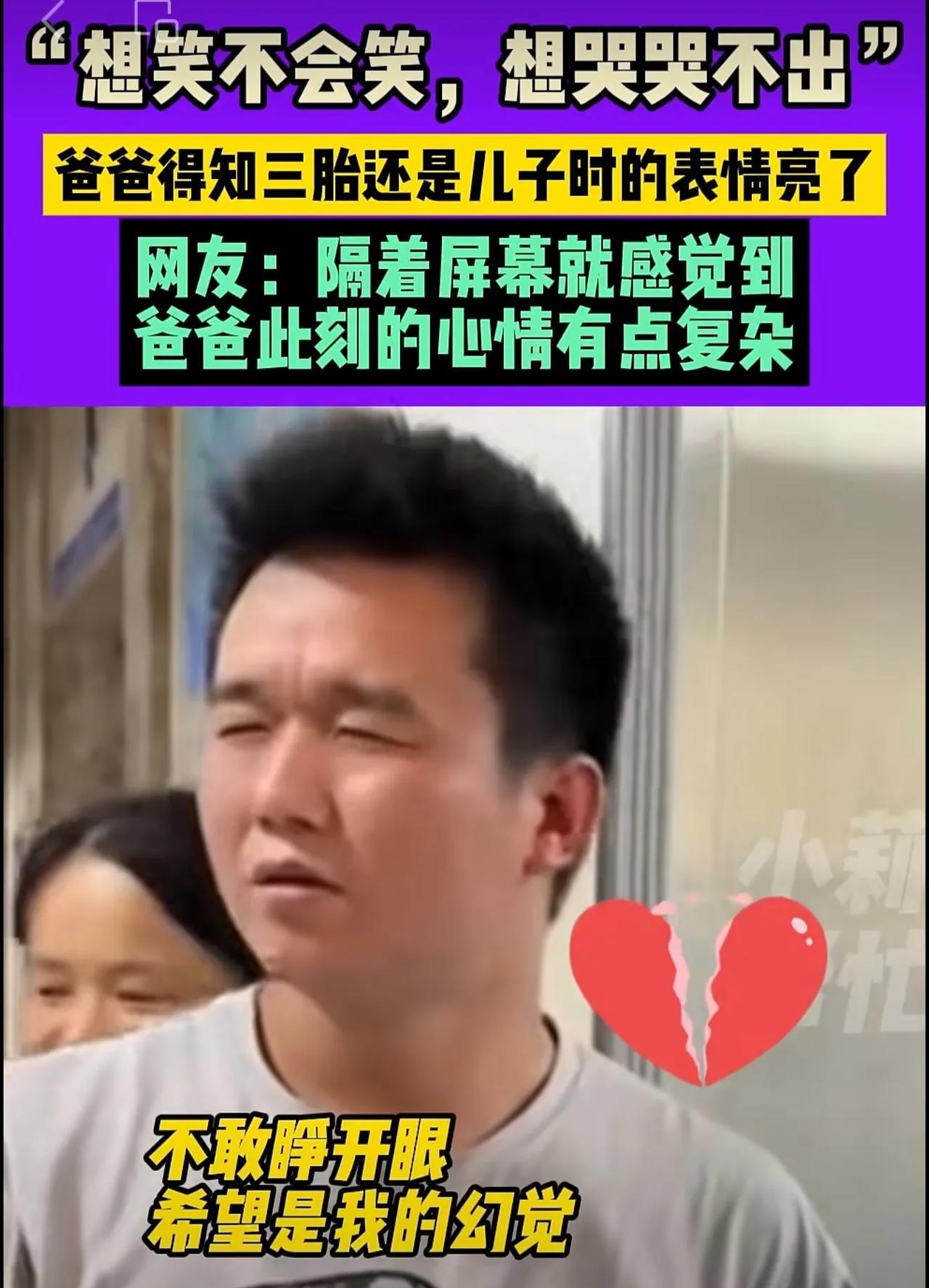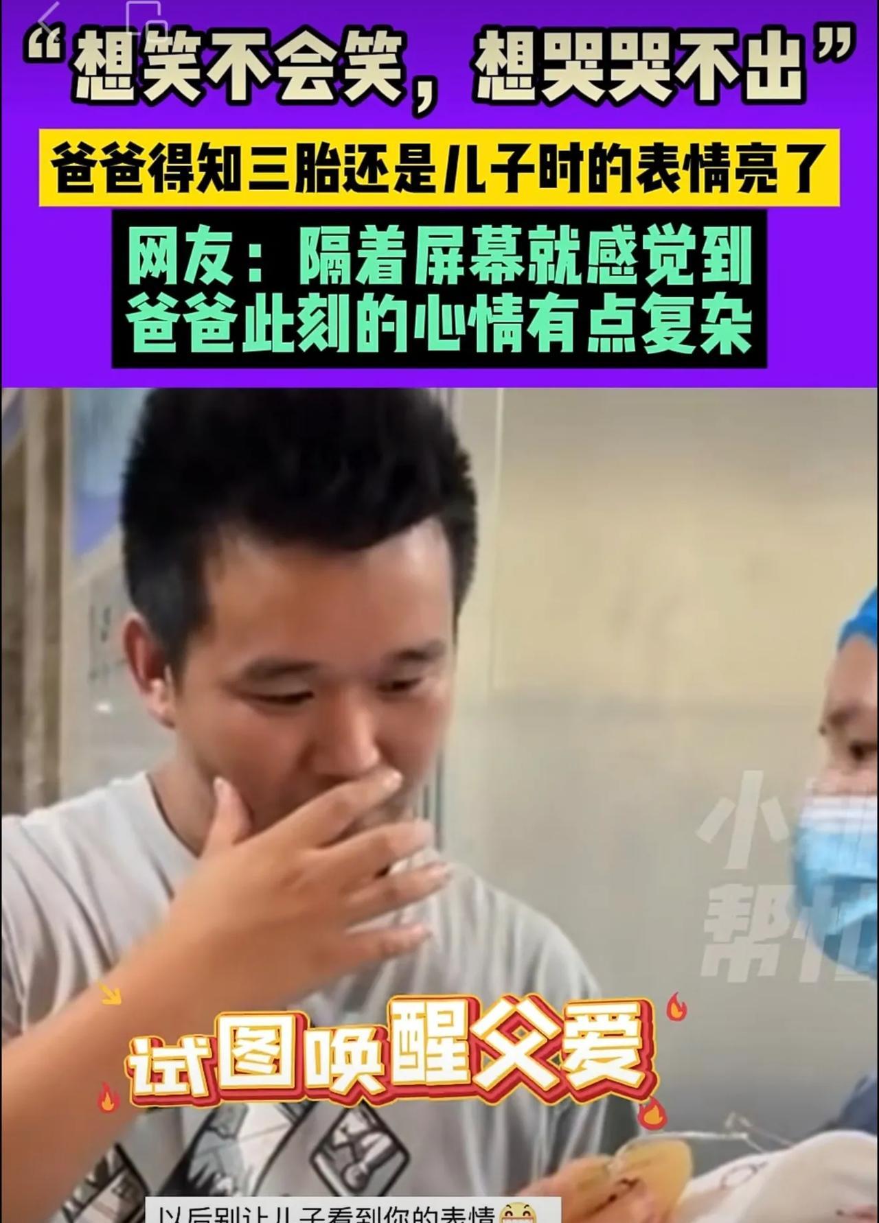 7月17日(发布)重庆,“想笑不会笑,想哭哭不出。”爸爸得知三胎还是儿子时的表情亮了,网友:隔着屏幕就感觉到爸爸此刻的心情有点复杂。