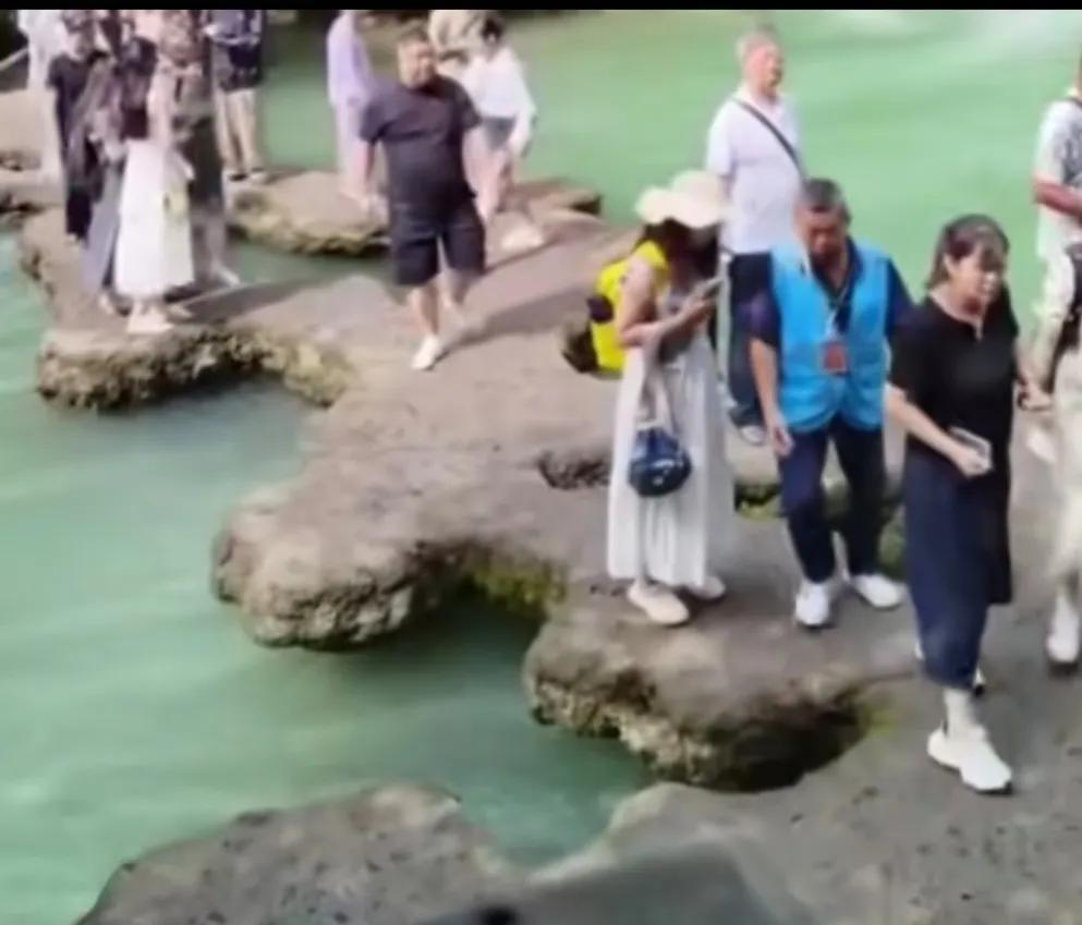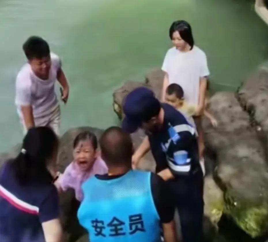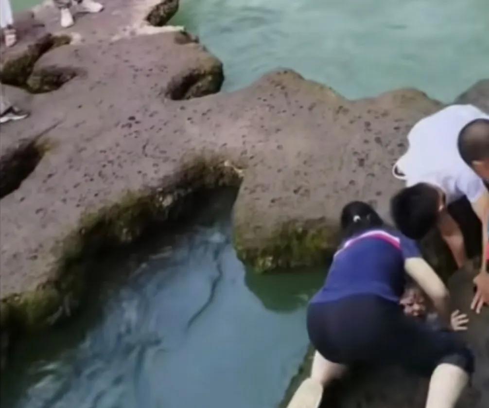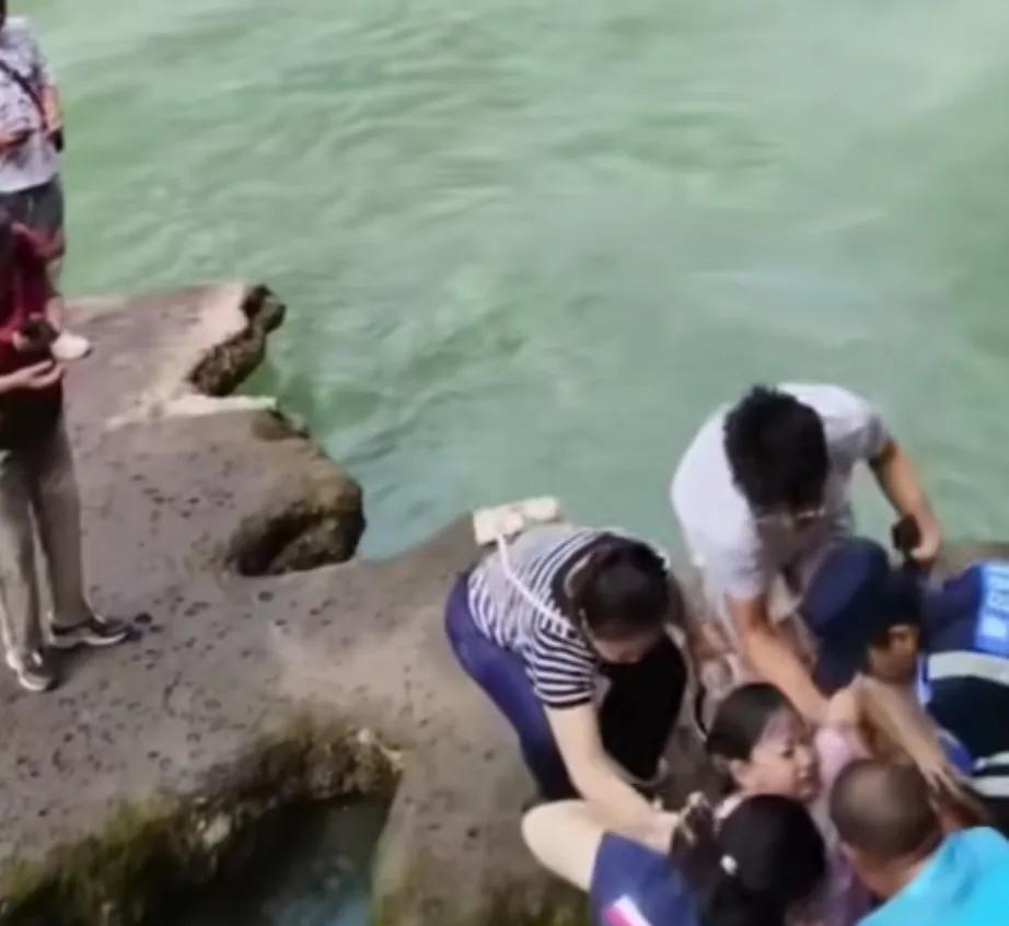 一位妈妈带着三个孩子站在景区水边拍照,老大站在妈妈的左边,老二站在妈妈的右边,旁边就是湍急的河水,而老三儿子则站在三人的正前面,正当四人都看镜头,摆出手势时,妈妈可能觉得儿子站的稍远了点,就把儿子往后拉了一下,结果妈妈这一拉,胳膊一不小心把站在右边的老二碰到跌到水里。