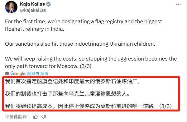 卡拉斯官宣,欧盟刚刚(7月18日)批准了迄今为止针对俄罗斯的最严厉制裁方案之一。 除了对俄罗斯的制裁,欧盟还将帮助规避制裁的中国银行施加更大压力,并阻止无人机技术出口。 文章中并没有提名字和数量,不出意外欧盟指的是此前曾提到的两家小型银行,而且强调的是“施加更大的压力”,至于阻止无人机技术出口那就更难了,都是民用的,欧盟和乌克兰也一直在买,很难被阻止。这两条看下来欧盟还是不想破坏中欧经济大局啊! 此轮制裁,最大的输家堪称是印度,欧盟除了要对105艘俄罗斯影子舰队进行追击外,直指舰船登记地为印度的炼油厂,印度以后再想玩儿转口贸易很难了。 最大的赢家应该是土耳其,其作为俄罗斯第三大石油进口国,连名字都没被提到,以后土耳其估计要取代印度继续做转口石油生意了,欧盟双标玩儿的真溜啊!