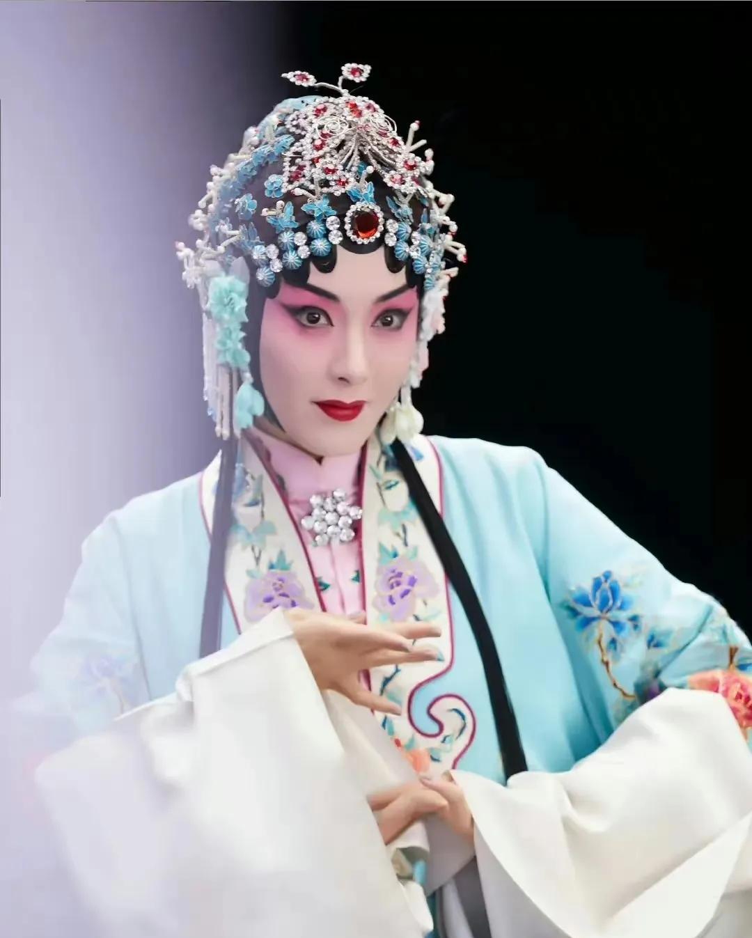 身着华丽的青衣服饰,曾黎在《武家坡》选段中,将水袖功、圆场步等专业动作演