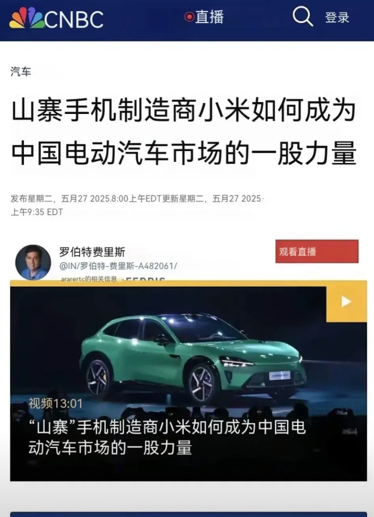美国CNBC电视台曾经在5月份恶意批评中国的小米公司"山寨手机制造商如何成为中国电动汽车市场的一股力量"。看了令人气愤,凭什么说小米是"山寨"?小米法务部就不应该惯着他们,必须打一场国际官司,彰显小米的能力。