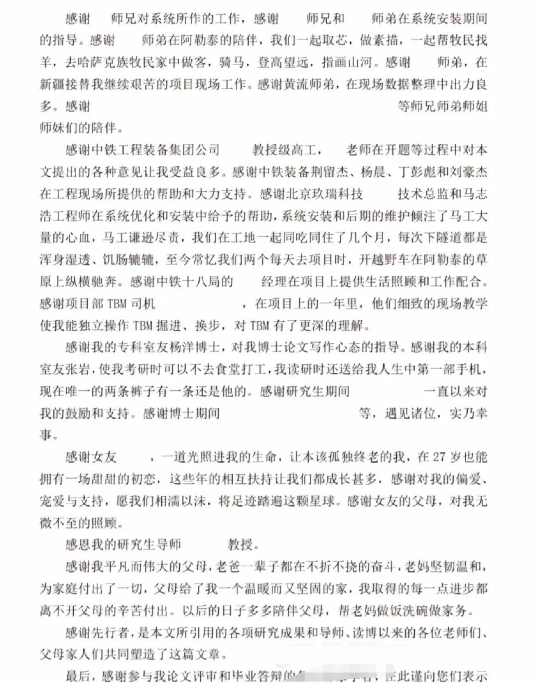 这个专科小伙逆袭成为博士,曾经做过电子厂的车床工,在建筑工地绑过钢筋,在煤矿上扛过炸药,其实老天是公平的! 这篇博士论文致谢,没有华丽的词语,讲的都是过去的琐碎事,但贵在真实。 高考两次才上专科,所有的寒暑假都在打工挣学费,读研时才有自己的电脑,手机是同学送的,甚至裤子也是同学送的,那时候已经是2018年。 这小伙吃了很多苦,曾经在最底层狼狈不堪的岁月,当他戴上博士帽的那一刻,这些都已经成为来时路。 最难能可贵的是,他从来没有怨恨过,心里只有感激,感恩国家,感恩老师,感恩同学朋友,感恩家人,心里始终有光。 老天是公平的,当他为你关上一扇门,也一定会为你打开一扇窗。 无论你处在多么糟糕的环境,无论当下过得多不如意,只要心里有光,坚持成为更好的自己,就有可能像这个挖煤小伙,人生实现开挂逆袭!