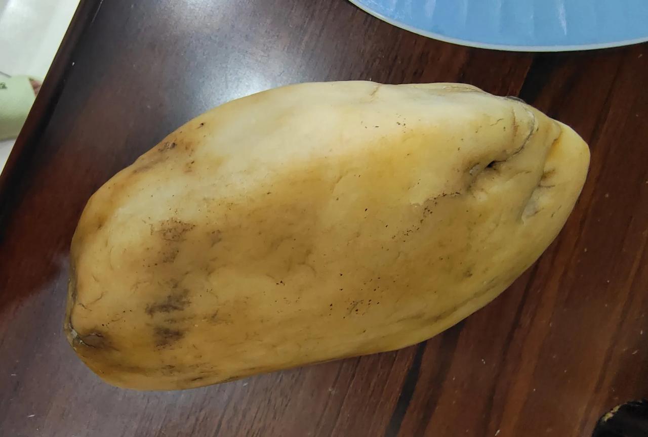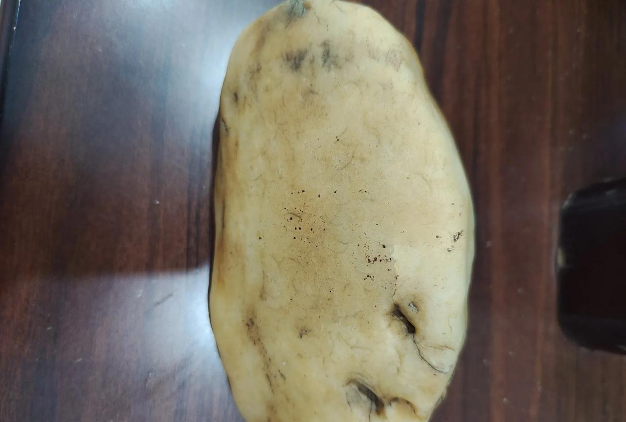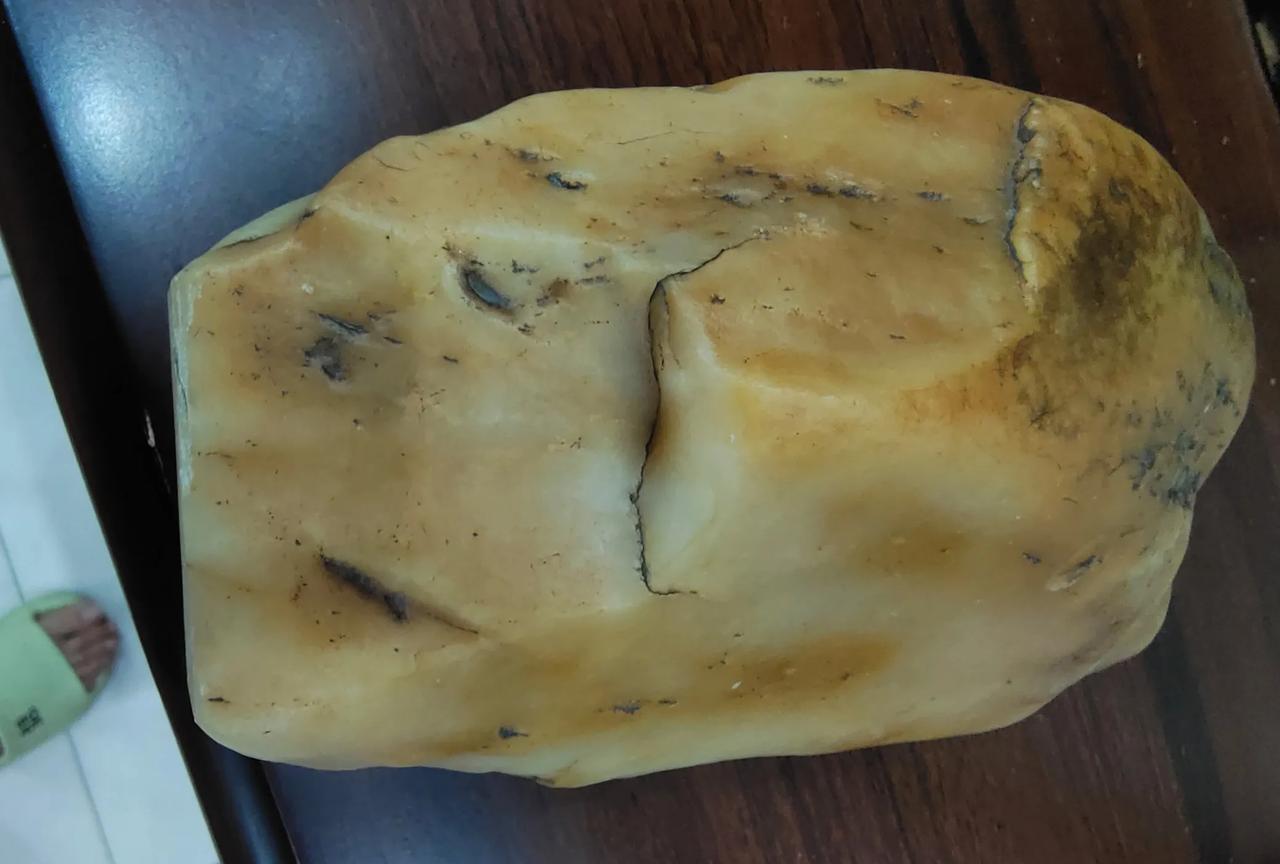 俺家老头子爱玩石头,储藏室里堆的都是他捡回来的形形色色的石头,家里角角落落的堆的也是石头,咱也不知道捡这些石头好干啥,不能吃不能喝也卖不了钱,我看着闹心,就偷偷往外扔,他知道了就跟我闹,我说:你闹啥闹?石头好你抱着石头过去吧。 去年去新疆玩,他又捡回来一个石头,宝贝似的洗了又洗,刷了刷,时不时拿住手电筒照照,还言之凿凿这是新疆和田玉,我不屑一顾,嗤之以鼻:你要能捡个和田玉,兔子尾巴能翘到天上去。 朋友们看看,他捡回来是什么玩意儿?跟和田玉沾边吗?