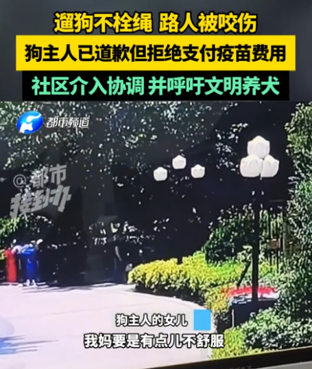 河南郑州,遛狗没拴绳,咬伤一男子,打狂犬疫苗全部费用下来得2000多,狗主人嫌太