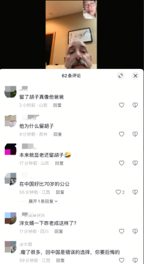 娘仨在中国快乐,山姆一个人孤零零在美国,这个把月视频中瞧瞧山姆感觉他真是老了不少,不过说真的没有哪个男人离开女人,能像以前那样帅气有型啦,山姆的变化好大明显没女人就是不行。