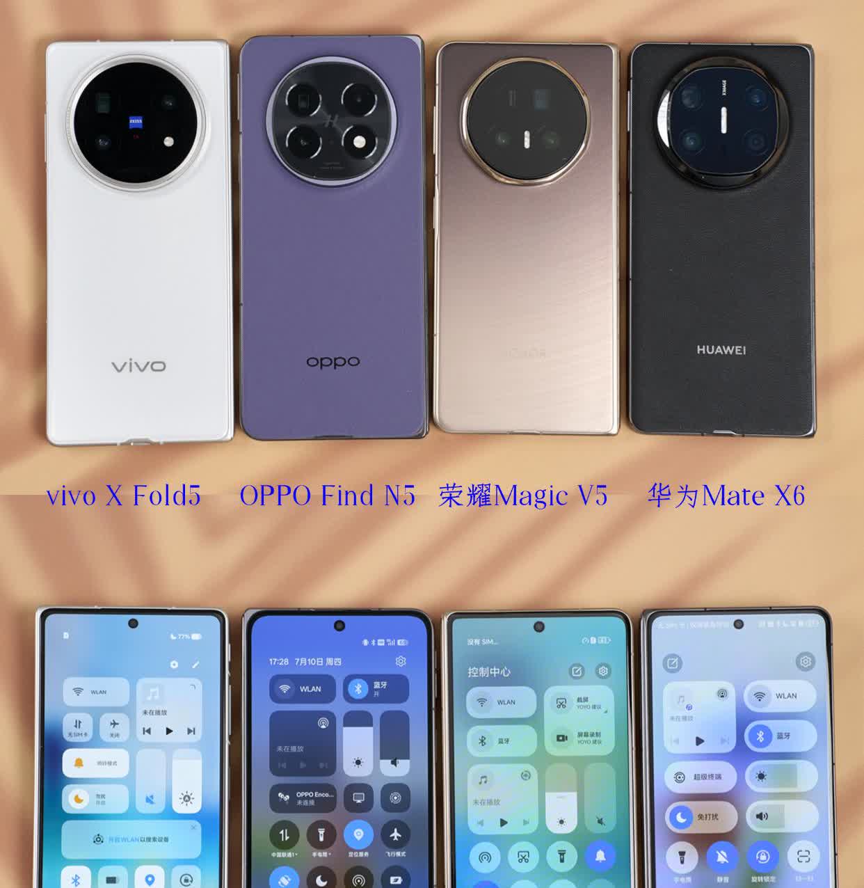 苹果折叠屏有消息了,分析师透露苹果已决定放弃自研无折痕方案,跑去用三星的方案了,这下定价是不是可以低一点了?之前曝料苹果折叠屏尺寸不大,内屏仅7.76",还有屏下摄像头、侧边指纹等,硬件够不够顶还不好说,但软件交互倒可以期待下~ 这么看来,咱国产折叠屏在技术上估计还能保持领先,像荣耀Magic V5、vivo X Fold5都主打轻薄,厚度甚至干到了8.8mm,还有6000毫安时级别大电池、潜望长焦等,体验不打折。 而要说折叠手机哪款性价比高,质量好,那vivo X Fold5得有一个位置,价格是真卷,但处理器用上代8G3是个小遗憾了。 另一款则是OPPO Find N5,现在某平台已经来到7772起了,这机子内外屏尺寸更大,厚度也干到了8.93mm,领先三星荣耀vivo近半年,钛合金铰链质量够硬、折痕浅,拍照也有潜望长焦,还有骁龙8E处理器和丝滑的ColorOS 15系统,体验很全面,放到现在依旧非常能打。