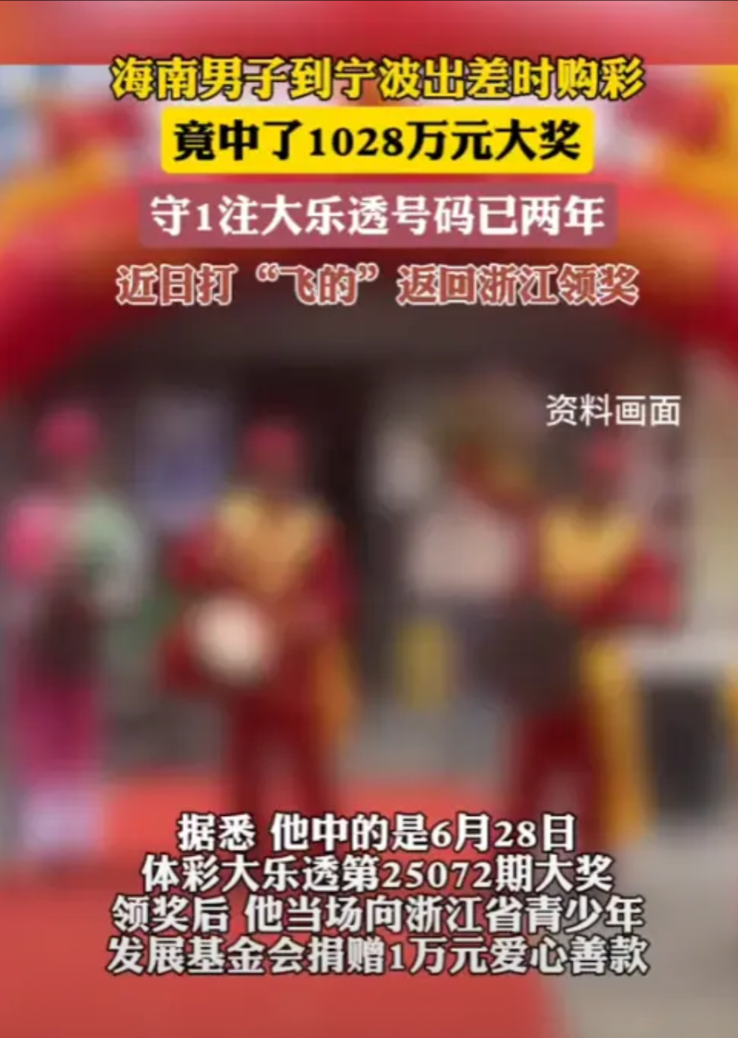 这事得从男子去宁波出差说起,上个月到宁波跑业务,忙得团团转,6月28日下午,谈完一笔生意,路过便利店想买瓶水,看到有彩票卖,就按老习惯买了一张。