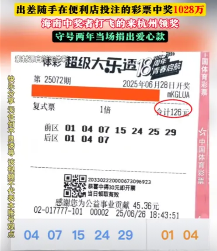 “这就是命啊!”6月28日,浙江杭州,一男子出差随手在便利店买了张彩票,谁知,竟然中1028万元!中奖后,男子直接从海南打飞的去杭州领奖,直呼:坚守2年的心动号码,没想到就中了!网友:果然世界上最不缺一夜暴富的人啊!
