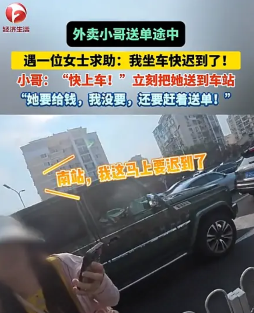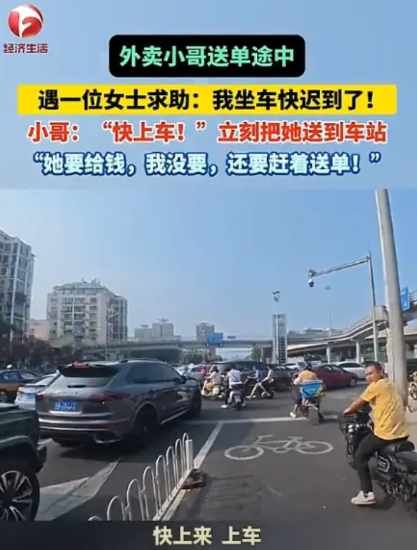 这年头,热心人真不多了!北京街头,一外卖小哥等红灯时被陌生女子叫住,对方着急赶高铁,请求搭一程。小哥一听是南站,二话不说接过行李:“快上来!”七八分钟狂飙送到,女子感激地要付钱,小哥摆手就走:“赶紧进去吧,我还得送单!”