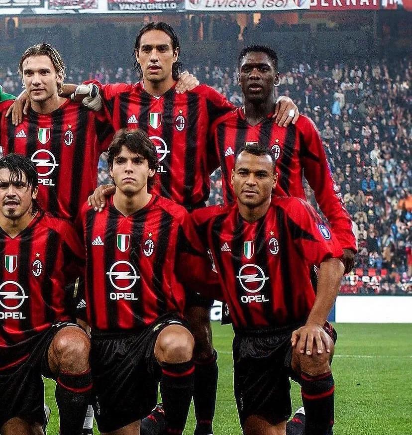 足坛经典老照片之AC米兰, 米兰历史上两支最经典的队伍, 其一就是三剑客时代的米兰, 其二就是图中安切洛蒂挂帅的米兰, 两支经典米兰,各位觉得谁更厉害? 安胖治下的经典圣诞树阵型, 还有四个十号共存的前腰后置发明, 留给足坛, 以及米兰球迷们一段美好的回忆!