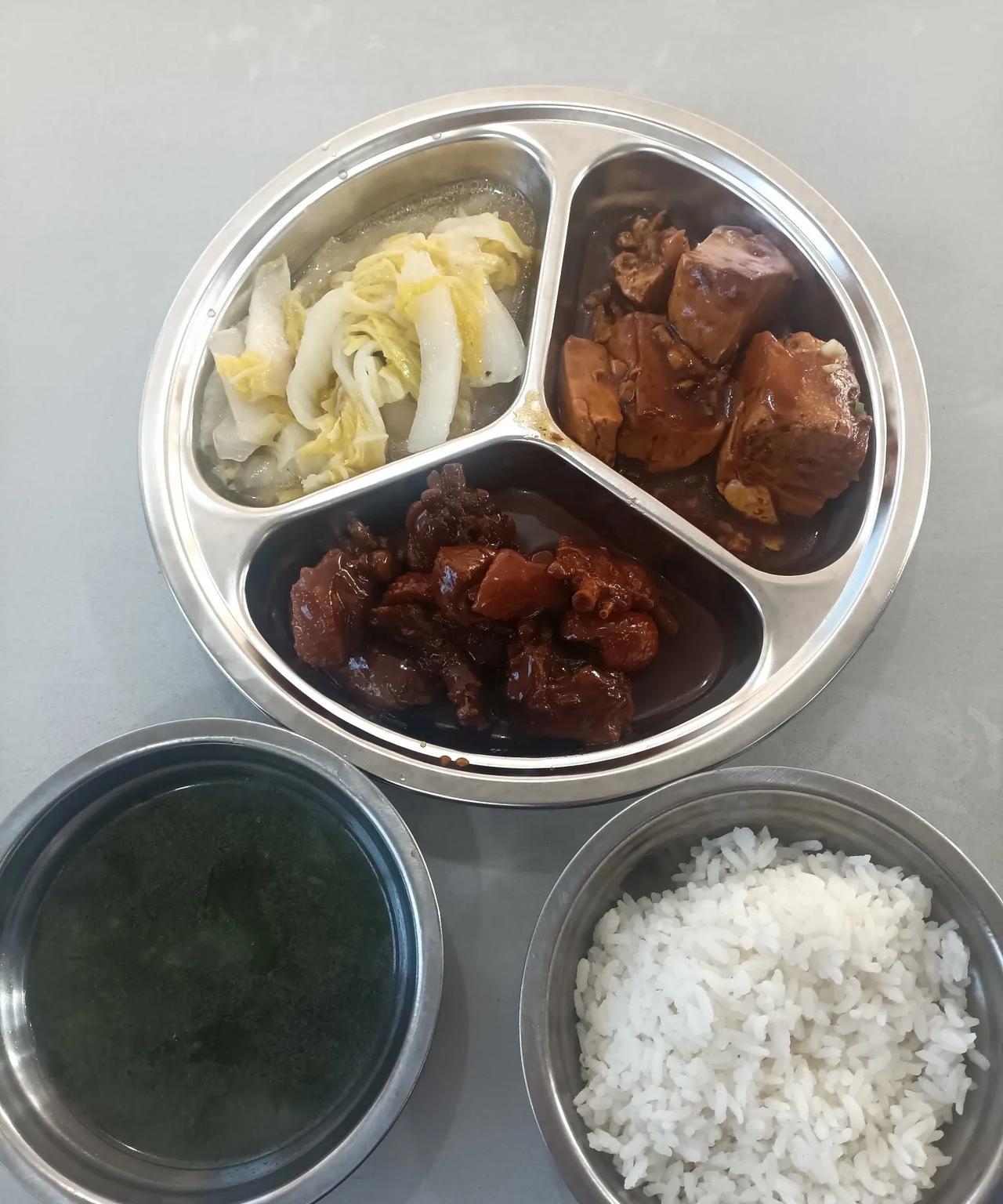 再出发再到工地 #分享城市新鲜事# 高铁站出发,西站很少来。人也没有东站多,很好。客流吞吐量估计还没有东站的1/4(凭感觉) 工地餐:红烧鸭子、卤水老豆腐、炒白菜。米饭一碗紫菜汤,还是满意的吧?