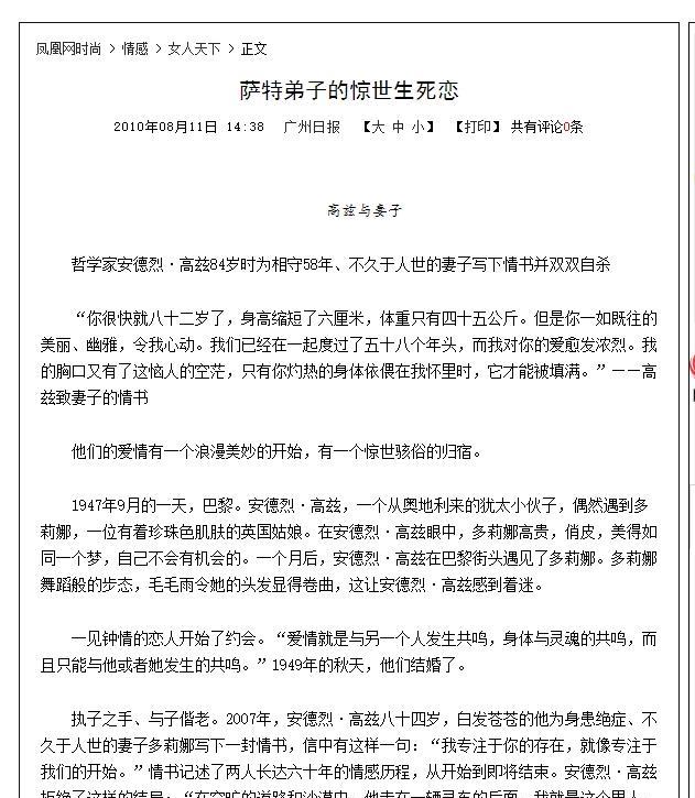 2007年9月,法国哲学家高兹与妻子,被人发现双双自杀身亡。两人并排躺在床上,他