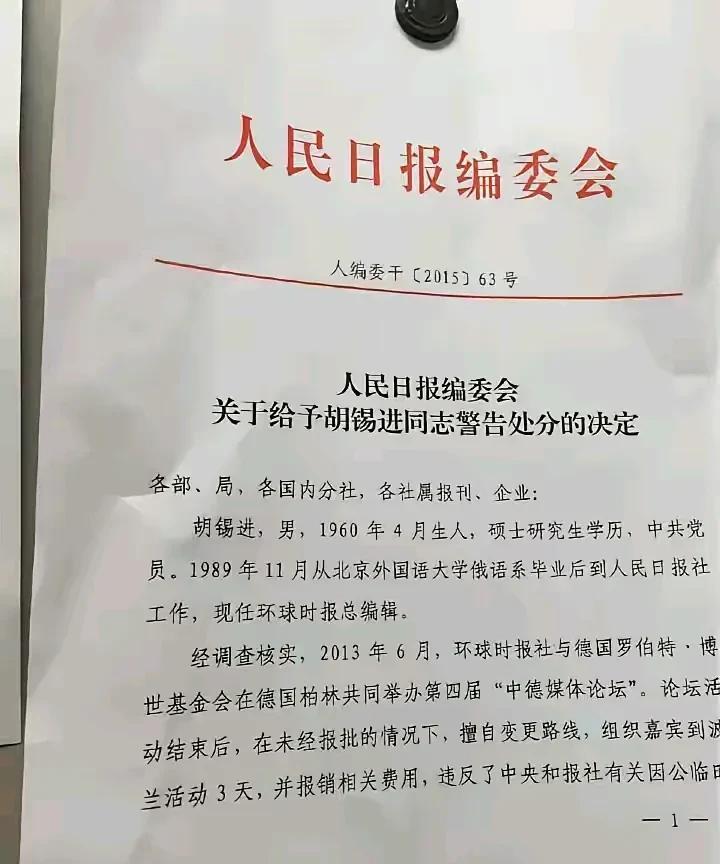 原来胡锡进还有过公款旅游被通报批评的黑历史,可他却还总是站在道德高地去评判他人,