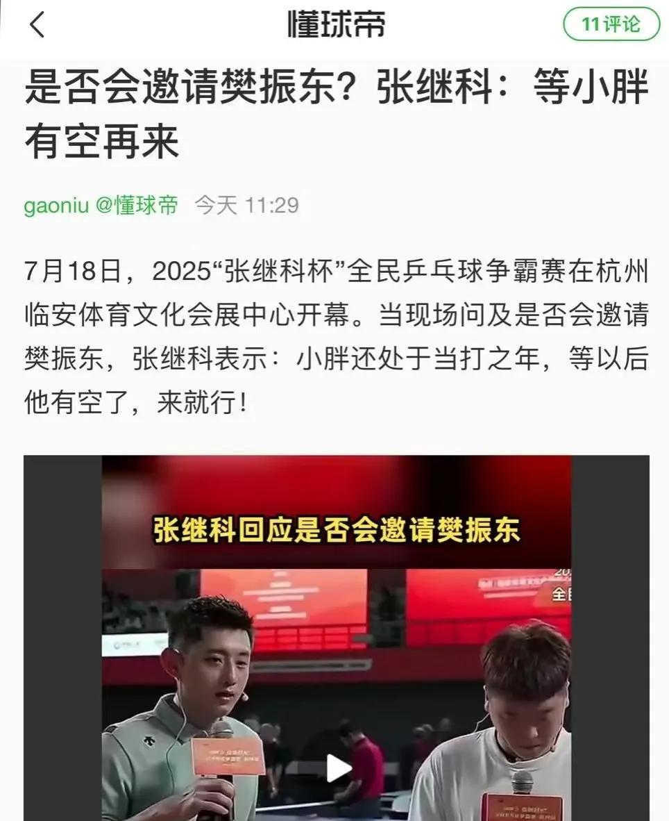 现在张继科不一样了,有礼有节,有边界感。 张继科回应邀请樊振东的问题。他说:小