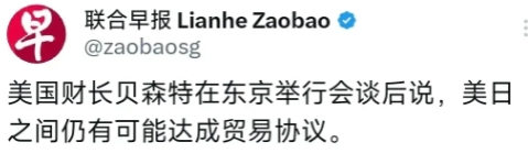 联合早报7月18日消息说,正在日本访问的美国财长贝森特表示,美国和日本之间仍有达