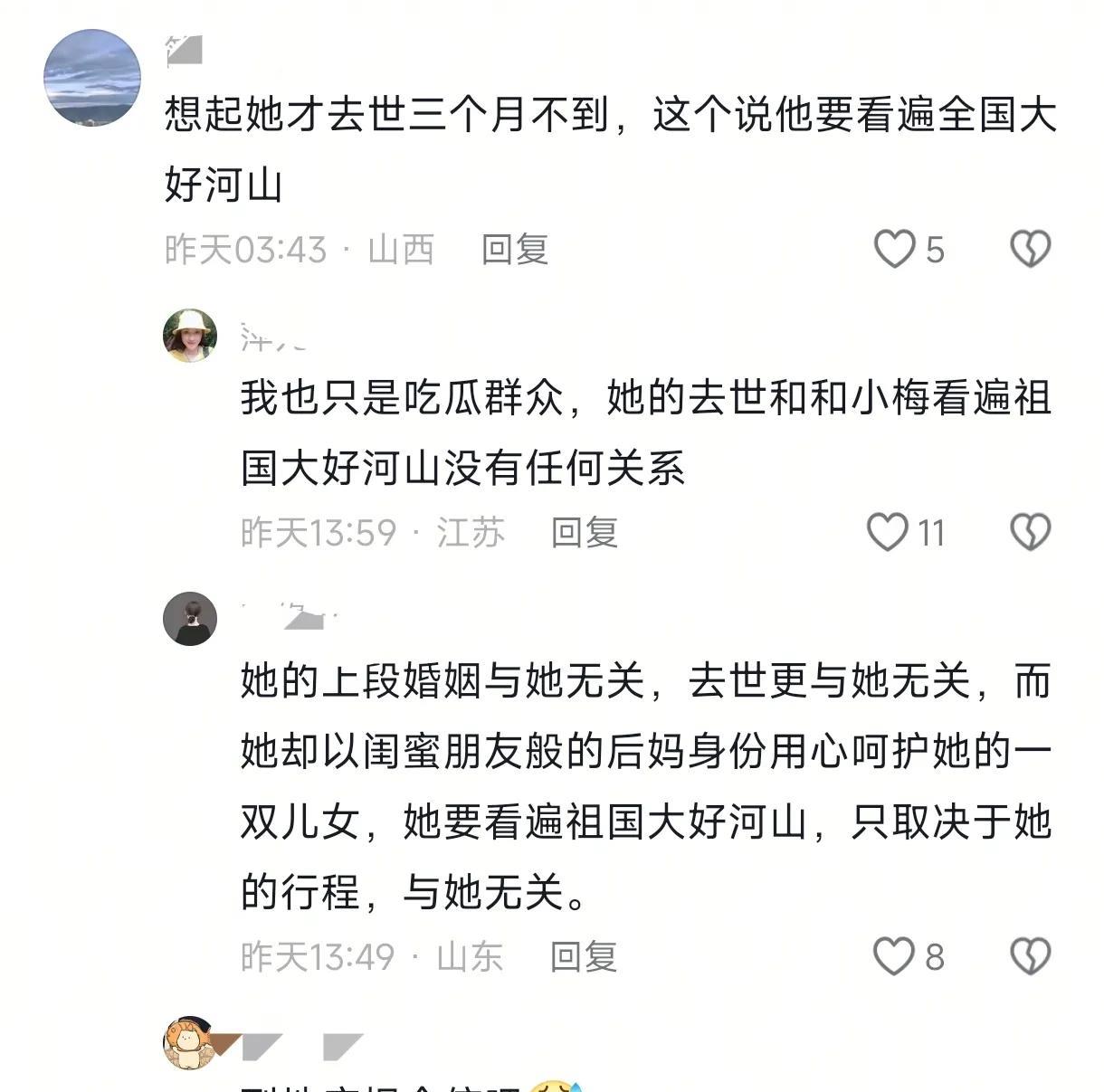 马筱梅发自己在内蒙玩穿蒙古族服装的视频,说要看遍祖国大好河山,结果有S粉在评论区谴责她,大S才死三个月,你说你要看遍祖国大好河山? 有时候真的很想知道S粉脑子里到底装的什么?大S临死前,她亲妈亲妹在跳舞,她亲老公在泡酒吧,她死了七天,她亲妈亲妹亲老公帮她庆祝结婚三周年,这个时候S粉在哪呢? 一个跟大S毫无关联的人,难不成还得给大S守孝三年?怎么不拿这个标准去要求S妈小S和光头呢?