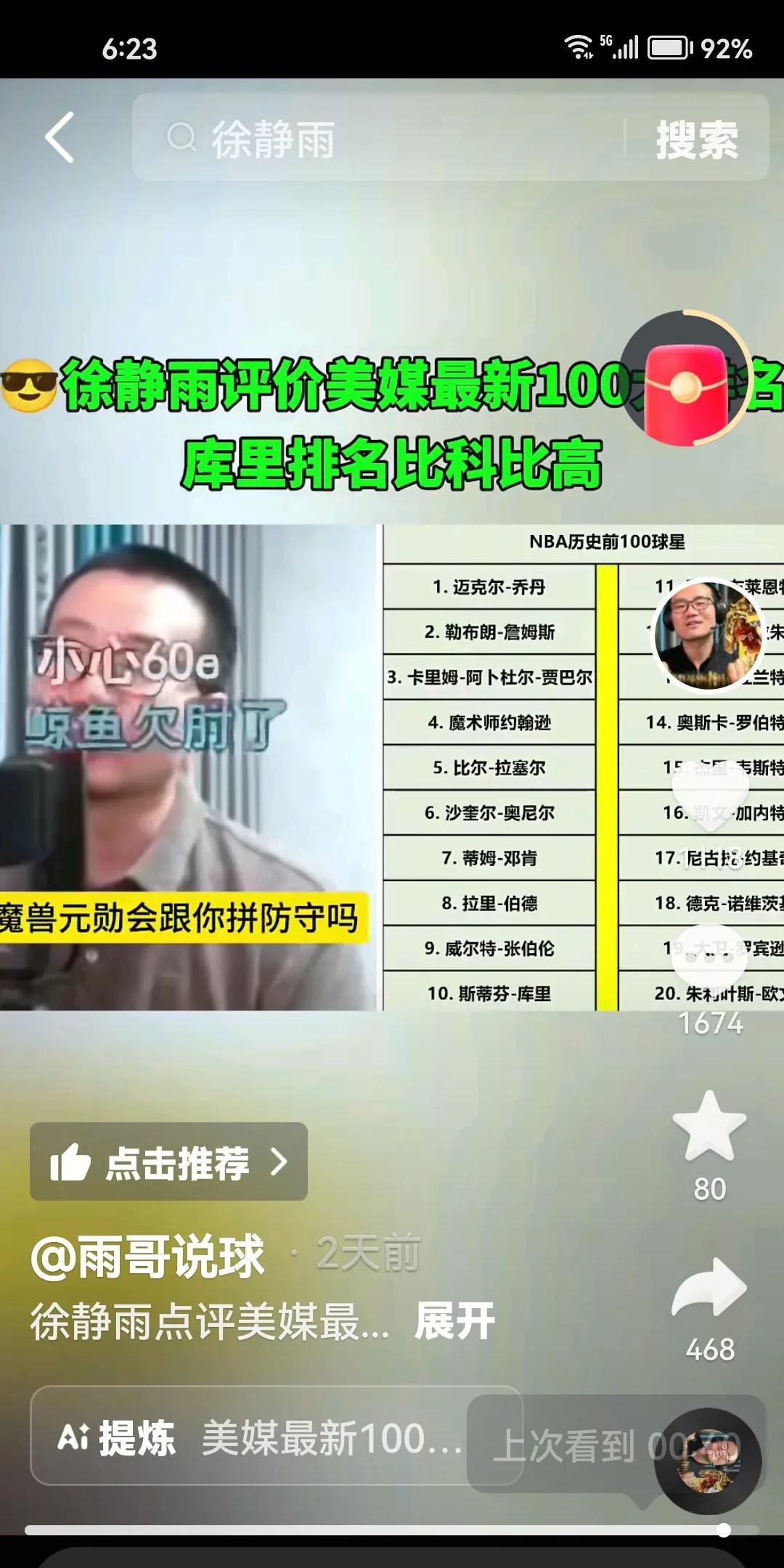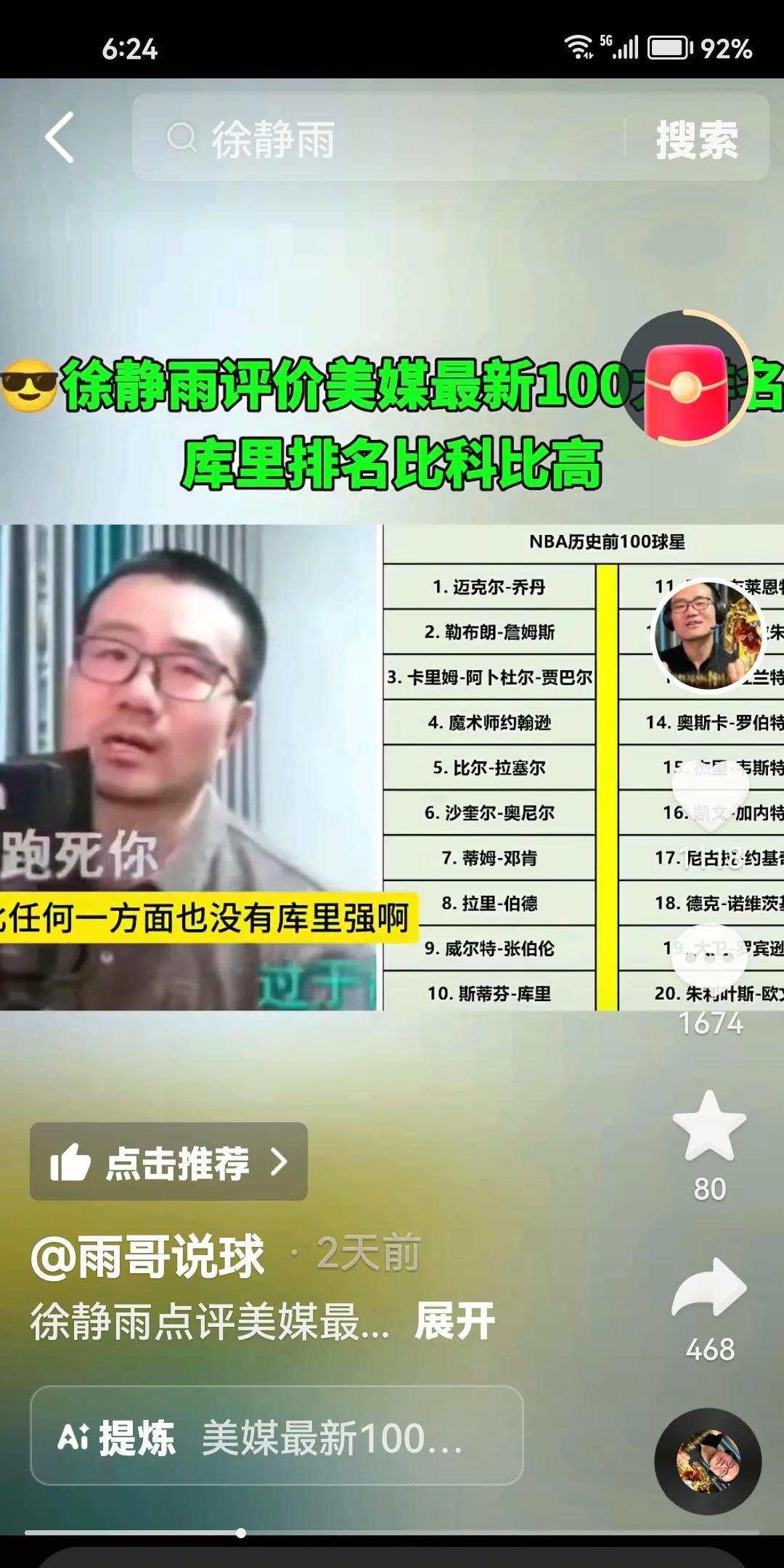 鲸鱼语出惊人:库里全方位碾压科比! 美国媒体BP重排最新的100大排名,排名一出来,瞬间炸了锅! 争议最大的无外乎拥有五冠,18次全明星,15次其中11次最佳一阵,15次入选最佳防守阵容的科比,被库里挤下去了,掉出了前十。 徐静雨从两个人的荣誉以及对篮球的贡献诸方面比较,认为在很早以前,他个人便认为库里应该排在科比前面,科比从任何一方面没有库里强,所以排名没一点毛病。 1.两个人均有两个得分王,但库里更高效 2.常规赛MVP数量库里有2个,科比仅有1个 3.老大冠军科比只有两个,库里有四个 从任何方面看,科比都比不了。 大家伙认可鲸鱼的说法吗?