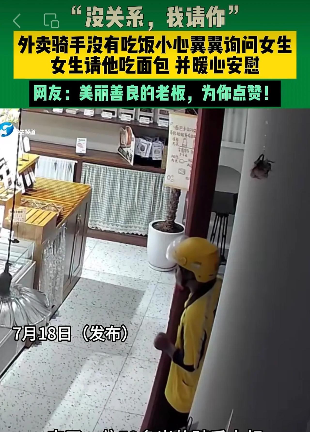 7月18日(发布),“没关系,我请你”外卖骑手没有吃饭小心翼翼询问女生,女生请他