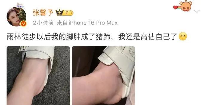 #张馨予雨林徒步脚肿成猪蹄#的话题一出现,便带着几分真实的狼狈与可爱冲上热议,让