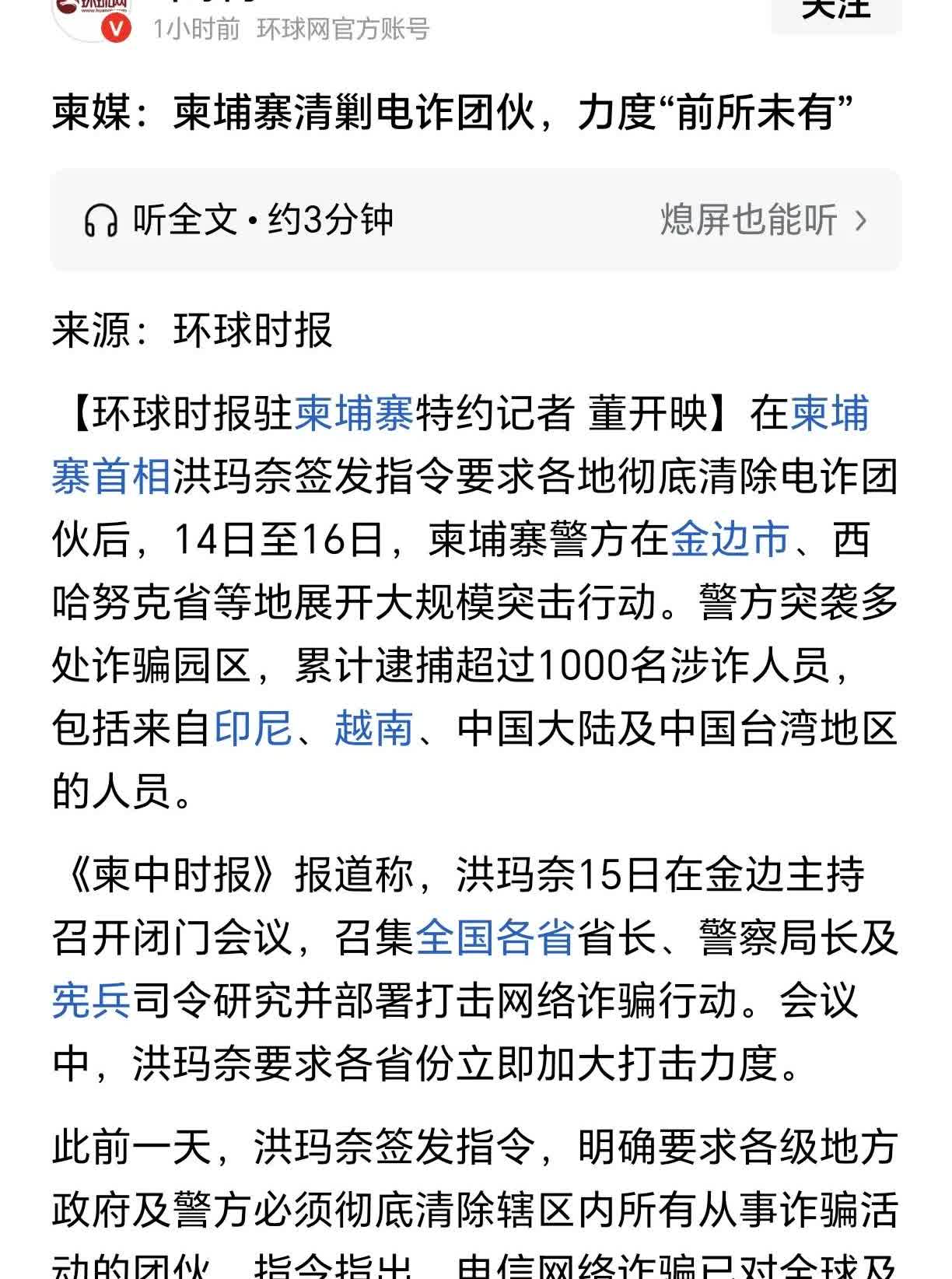 洪森父子之前挣电诈等黑灰产的钱,现在事情闹大了,又开始搞神圣切割,想把责任罪过撇的一干二净了。 在柬埔寨那么大点地方,没有他们父子派系势力的包庇纵容,那么多的电诈园区和非法黑灰产交易中心能建立的起来吗?平时那么多犯罪集团的水电物资消耗,那么多的武装人员保护,谁提供的呢? 洪森父子现在受到中国、泰国在内的东南亚各国和联合国的压力,内部反对势力又趁机做文章,就把过去包庇的那些财神爷拉出来顶罪。 有关系的,在行动前早就收到风声跑路了,剩下那些被落网的倒霉蛋也只是给国际舆论做交代用的。没有死刑、重刑惩处,以东南亚国家漏洞百出的法律,就算抓了也是等风头过了就放人,电诈园区死灰复燃只是时间问题。