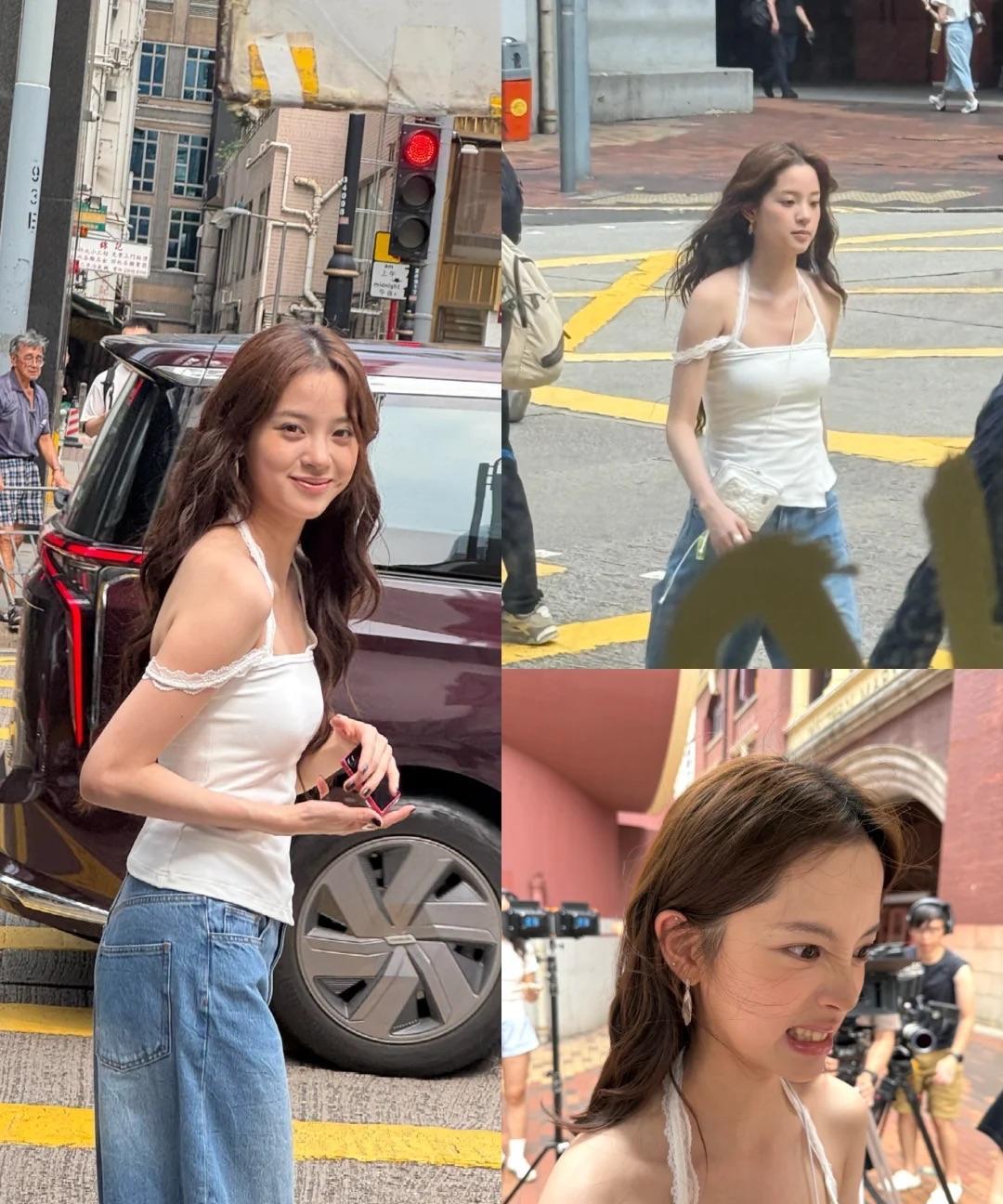 欧阳娜娜街拍分享,挂脖背心配阔腿牛仔裤,纯欲街头! 这次穿搭很适合小个子,上短下