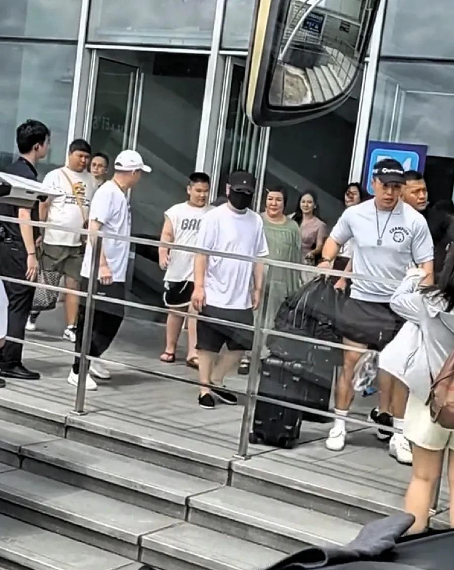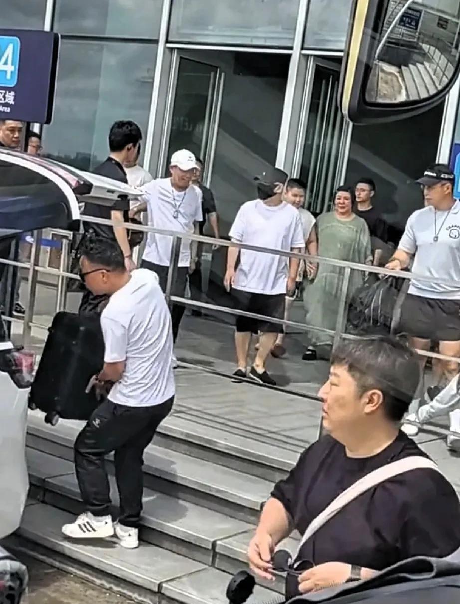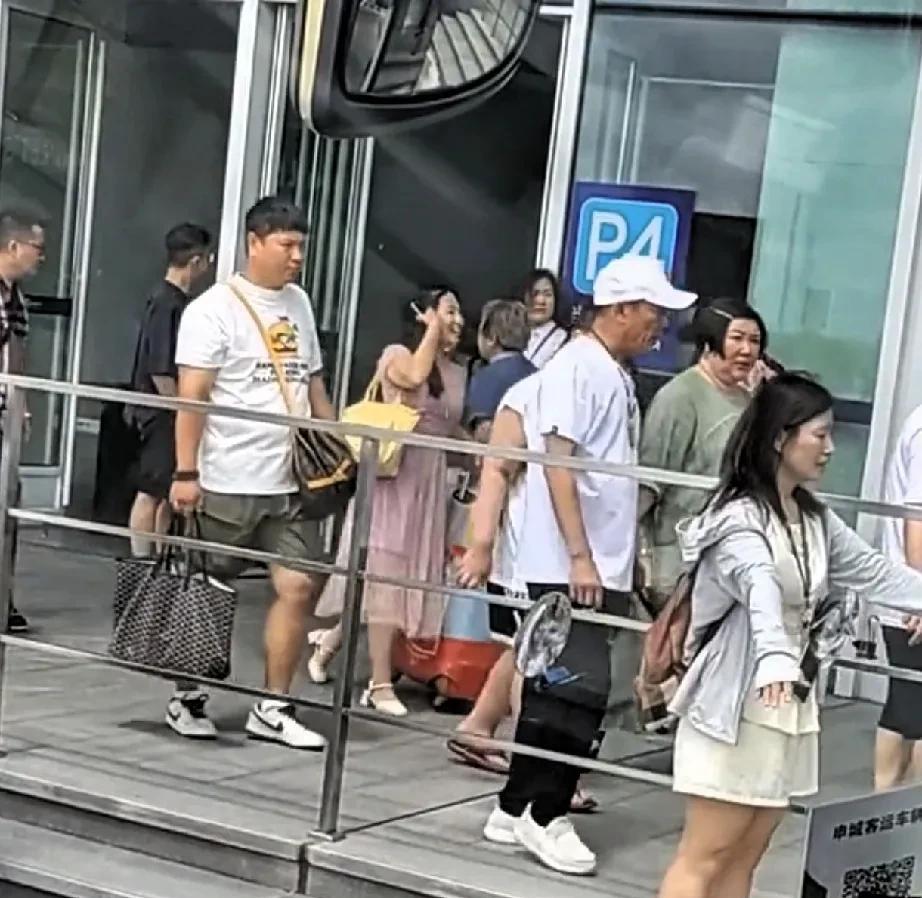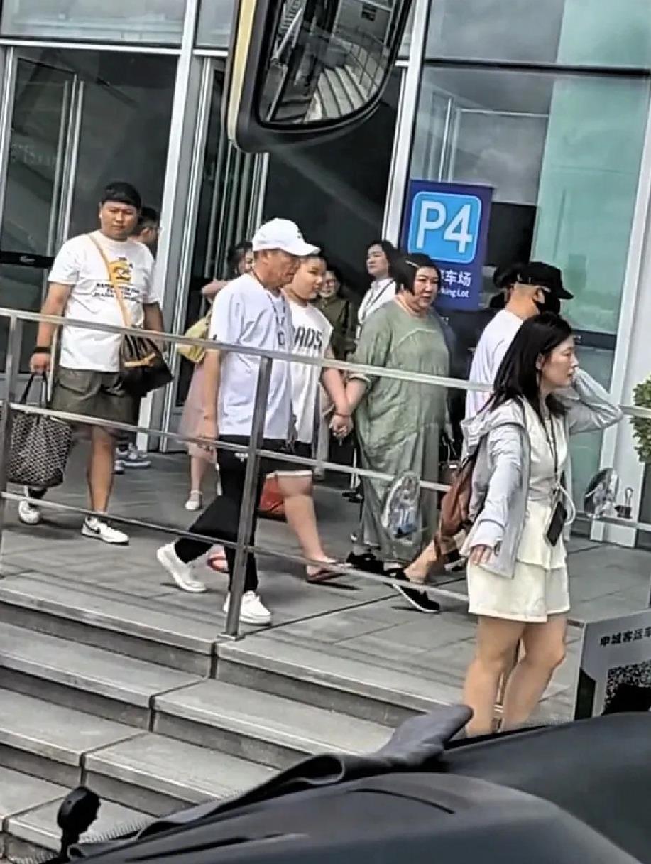 郭德纲一家三口被偶遇,妻子王惠美丽大方牵着儿子郭汾阳。郭德纲老师走在前面和路人打