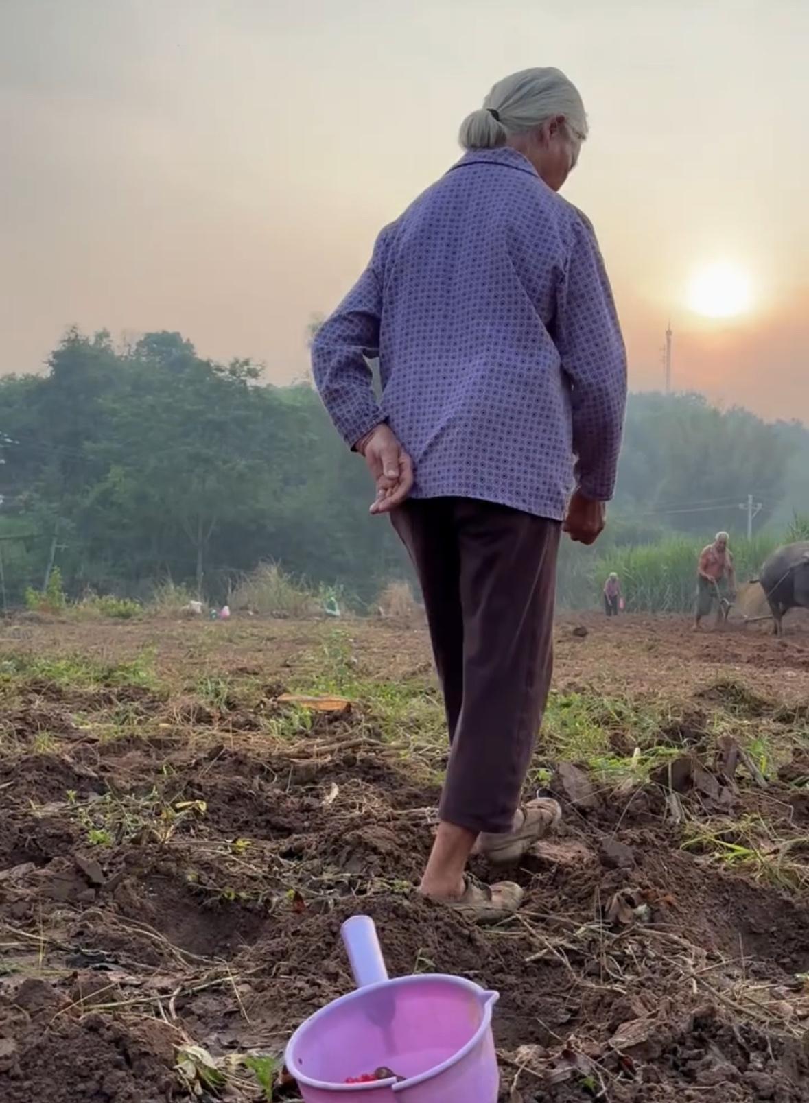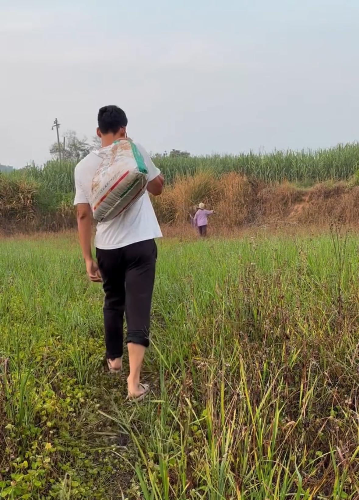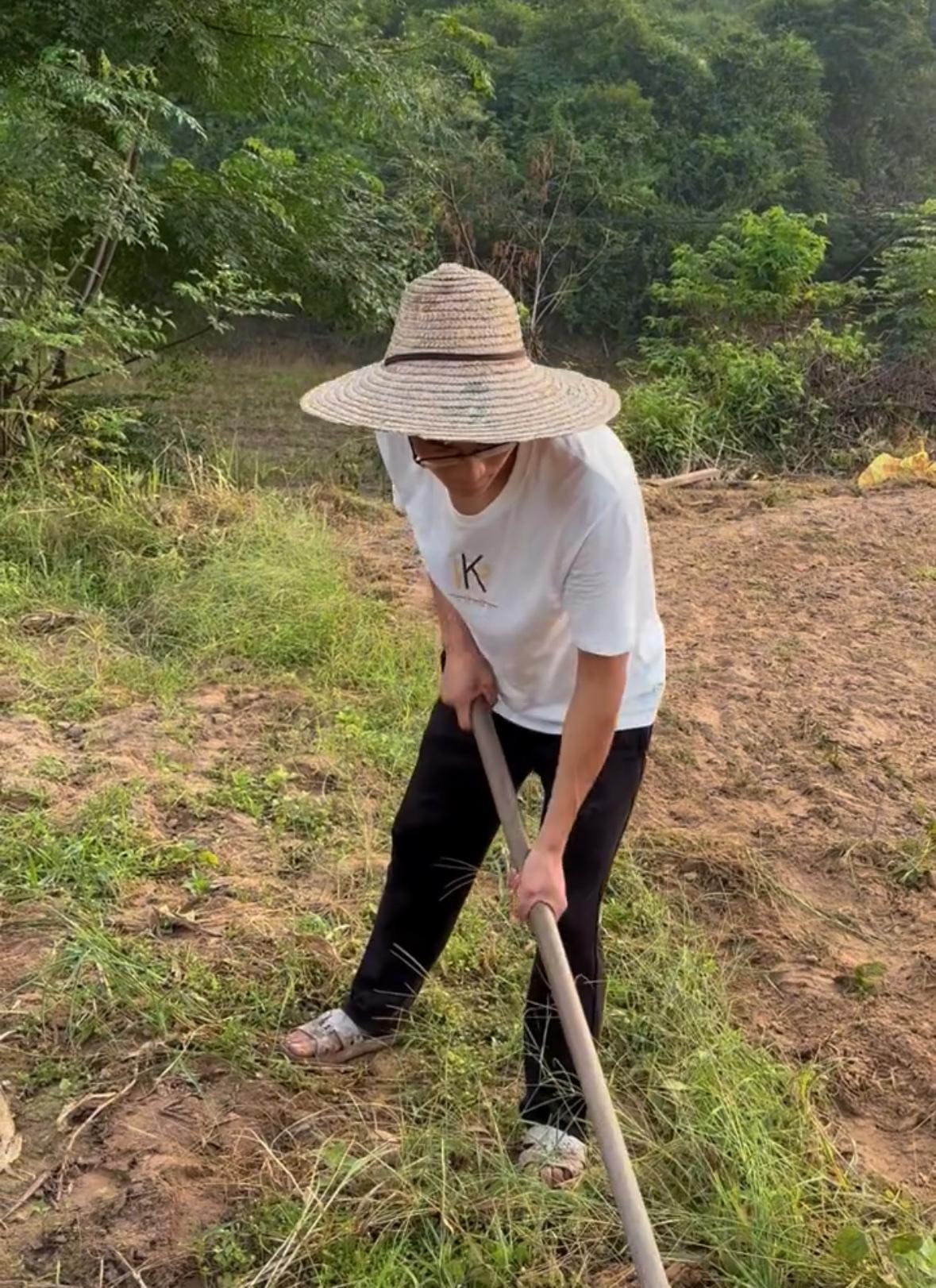 唐尚珺到家不耽误干农忙,刚到家就和老妈一块去种地,唐尚珺扛起锄头往地里走去,同时