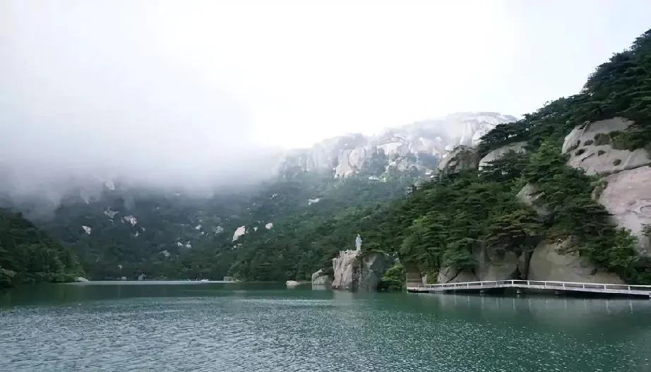 炼丹湖,深隐在安徽天柱山山腹之中,四围青黑山体像巨大丹炉壁,蒸腾着云雾烟气。湖水
