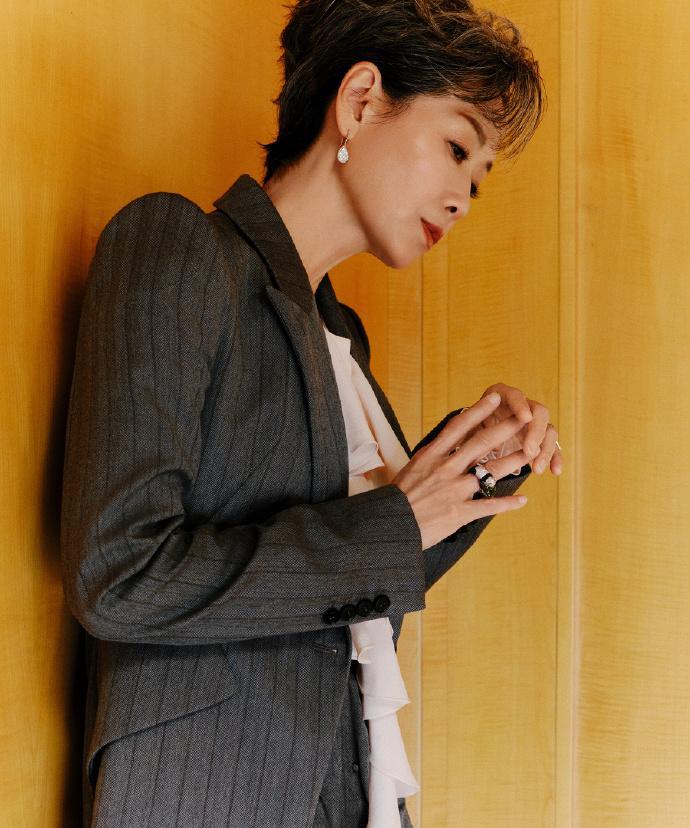 近日叶童在出席活动的时候搭配的很洒脱,看上去超有时尚丽人范儿。 叶童里面穿白色衬衣,这件衬衣上有很美的褶皱设计,能够凸显出满满的浪漫感。 她有着极为苗条的身段,个子也很高挑,穿上西装之后气质特别的出众。 叶童这回搭配了一件很漂亮的条纹西装,气质太完美了。 她还留着漂亮的短款卷发,戴着奢华的耳坠,还画着精致的妆容,真的是太有魅力了。 总的来看叶童如今依然很年,可谓是风采不羁当年啊。