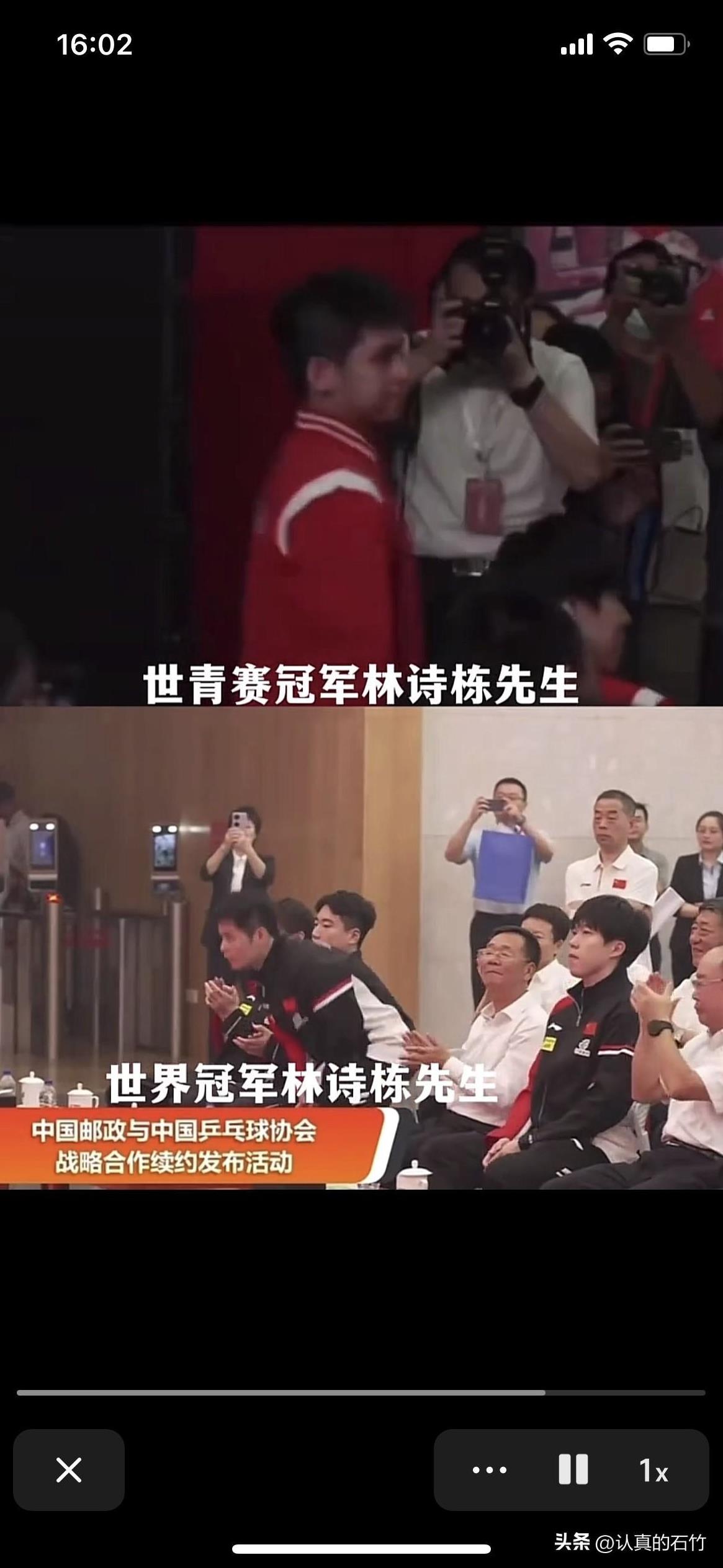 世青赛冠军联赛的先生 在中国邮政与中国乒乓球协会战略合作续约发布活动中。 主持人介绍林诗栋: 世青赛冠军林诗栋先生。 听了介绍心里有一点难过,小石头得过很多大满贯,冠军赛等赛事冠军。但是小石头没有获得过奥运会、世界杯、世锦赛等世界大赛冠军。 希望有一天主持人介绍林诗栋: 奥运会冠军林诗栋先生 世界杯冠军林诗栋先生 世锦赛冠军林诗栋先生 希望小石头加油!不断进步,早日获得世界大赛冠军。